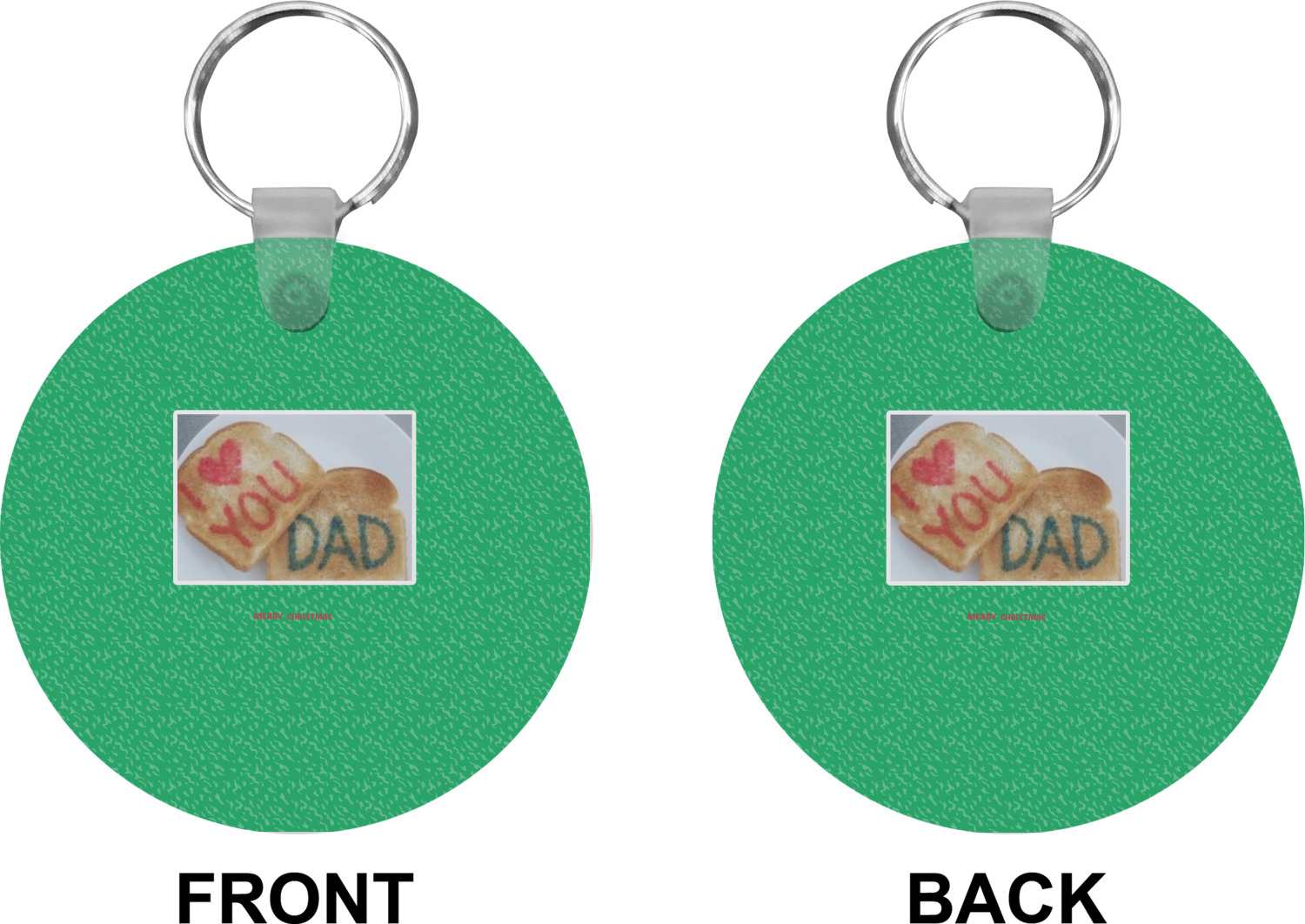 Our personalized keychains attach to the included metal, split key ring with a plastic, removable snap. Since a metal ring is included with your purchase, you have the liberty to keep your keys together on the ring, with or without your unique keychain. We offer this keychain in three different shapes: circle, heart, or diamond. We print your personalized design(s) on both sides of the key chain, and the surface has a glossy, reflective finish that only emphasizes your design. Each keychain is approximately 2.25 by 2.25 inches.