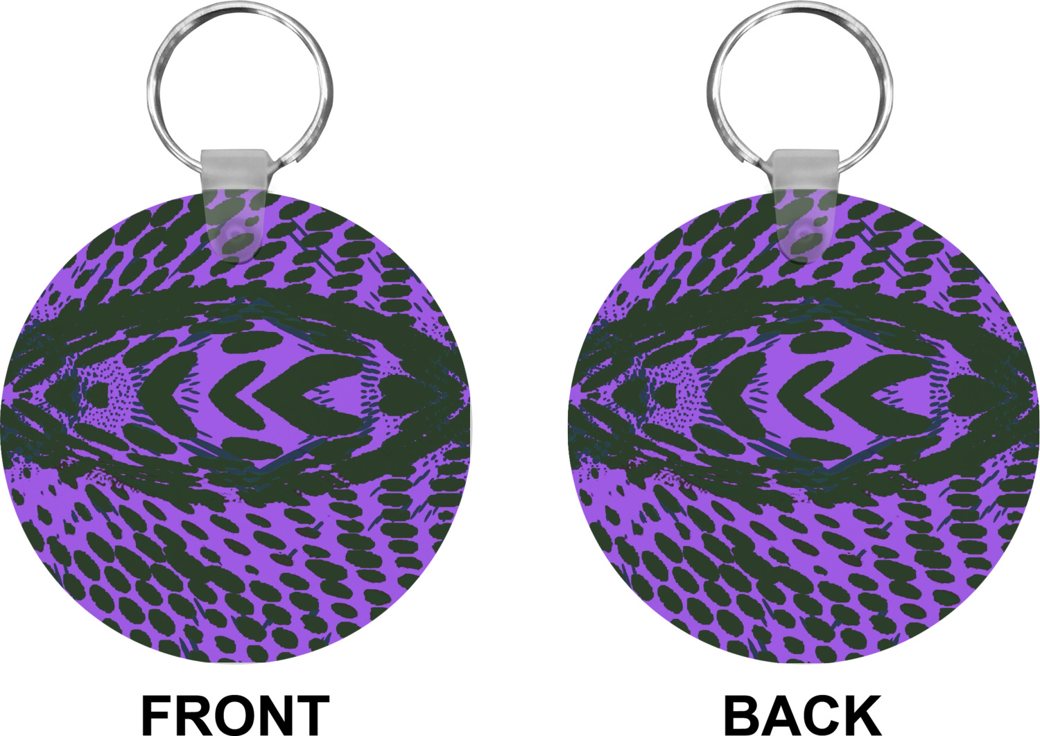Our personalized keychains attach to the included metal, split key ring with a plastic, removable snap. Since a metal ring is included with your purchase, you have the liberty to keep your keys together on the ring, with or without your unique keychain. We offer this keychain in three different shapes: circle, heart, or diamond. We print your personalized design(s) on both sides of the key chain, and the surface has a glossy, reflective finish that only emphasizes your design. Each keychain is approximately 2.25 by 2.25 inches.