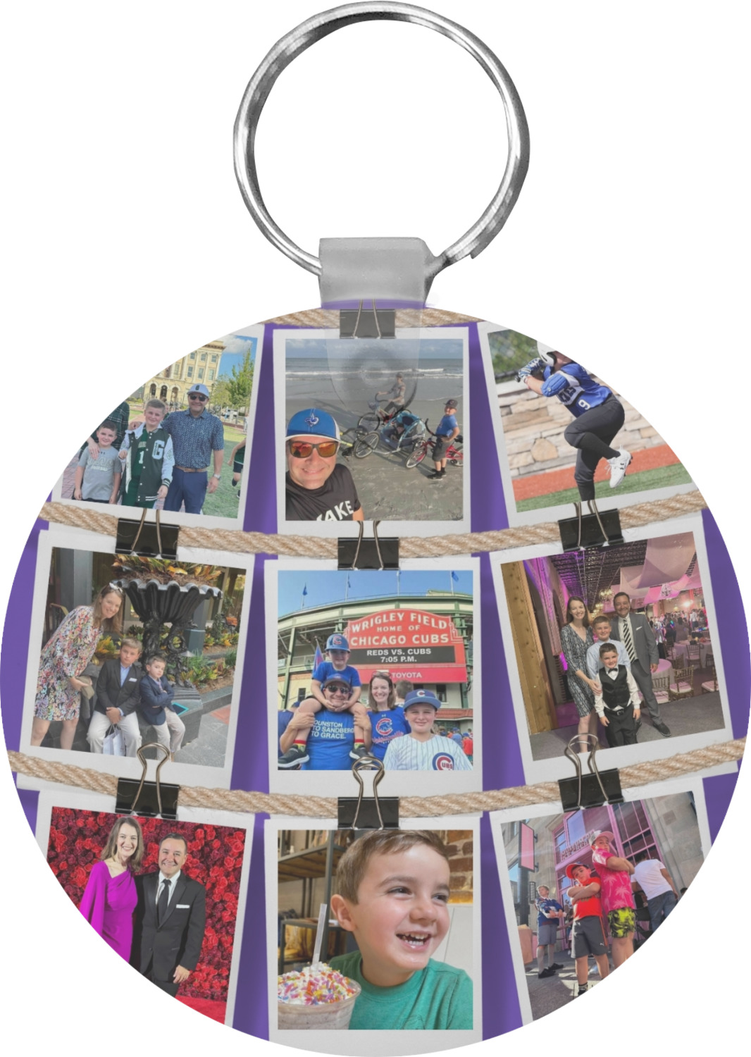 Our personalized keychains attach to the included metal, split key ring with a plastic, removable snap. Since a metal ring is included with your purchase, you have the liberty to keep your keys together on the ring, with or without your unique keychain. We offer this keychain in three different shapes: circle, heart, or diamond. We print your personalized design(s) on both sides of the key chain, and the surface has a glossy, reflective finish that only emphasizes your design. Each keychain is approximately 2.25 by 2.25 inches.