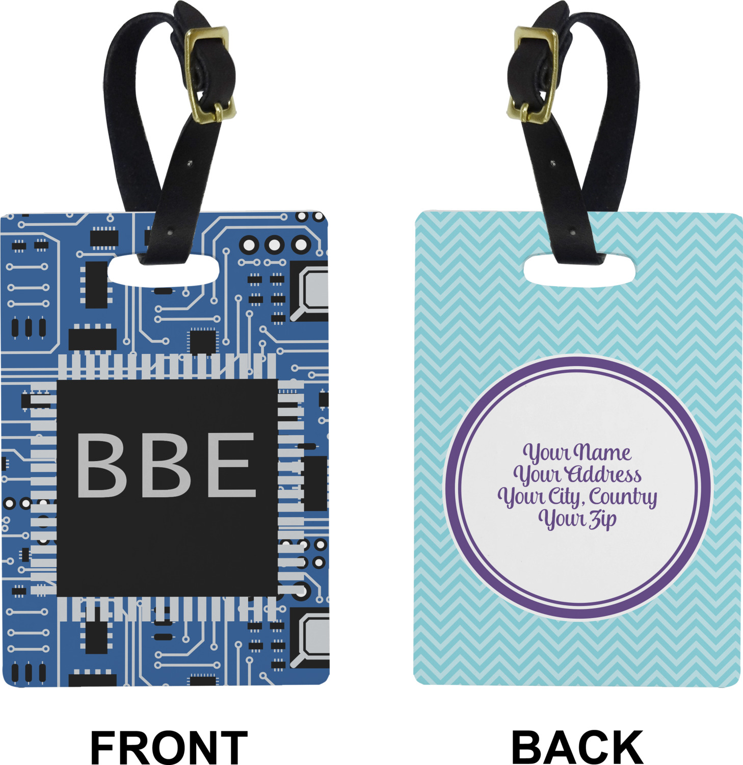 These cute luggage tags are made of a fiber-reinforced, UV-resistant plastic, making them waterproof and durable enough for both everyday use and the rugged adventures of any traveler! A leather strap with holes and a buckle is included with your purchase and can be used to attach your custom luggage tag to any suitcase, backpack, or duffel bag. You can design these travel tags as you wish; your customization will be displayed across the front, while the back will show as little or as much personal information as you want.