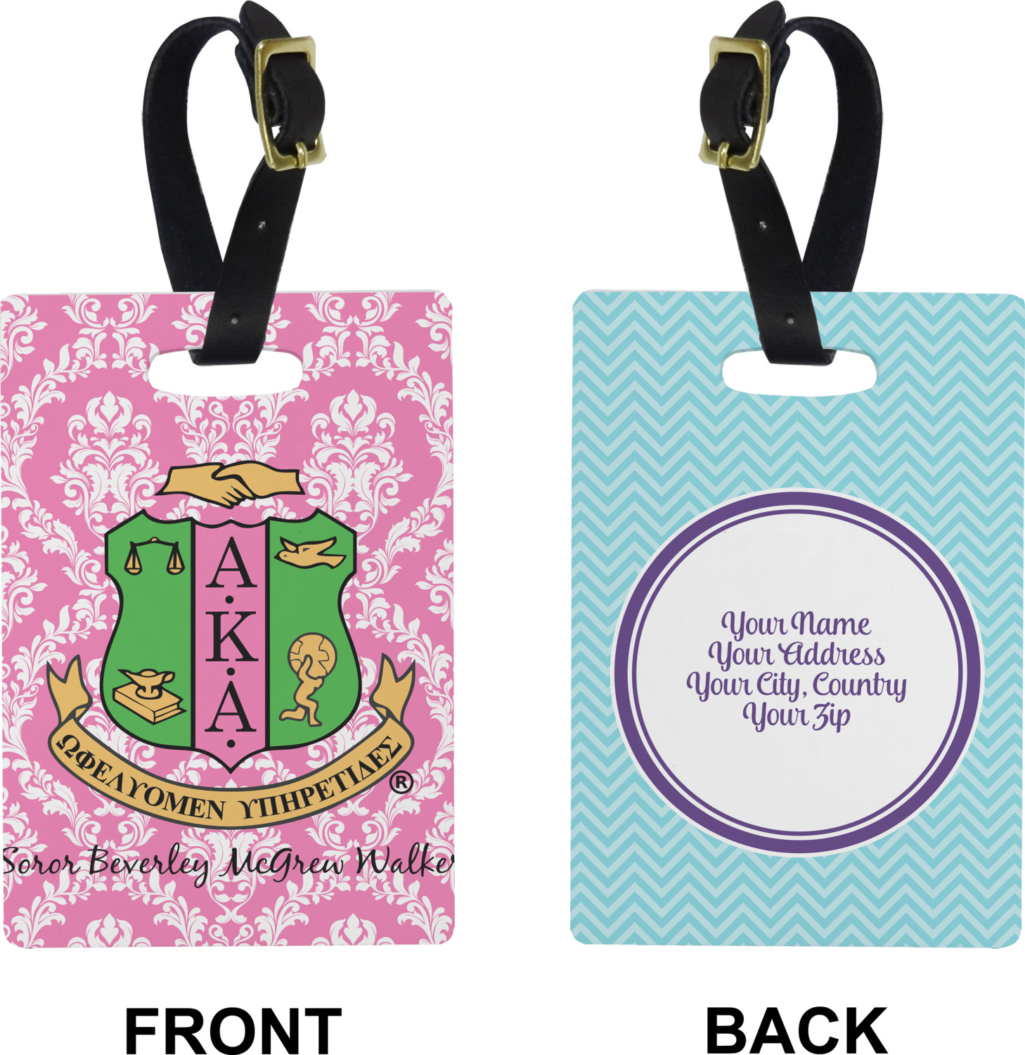 These cute luggage tags are made of a fiber-reinforced, UV-resistant plastic, making them waterproof and durable enough for both everyday use and the rugged adventures of any traveler! A leather strap with holes and a buckle is included with your purchase and can be used to attach your custom luggage tag to any suitcase, backpack, or duffel bag. You can design these travel tags as you wish; your customization will be displayed across the front, while the back will show as little or as much personal information as you want.