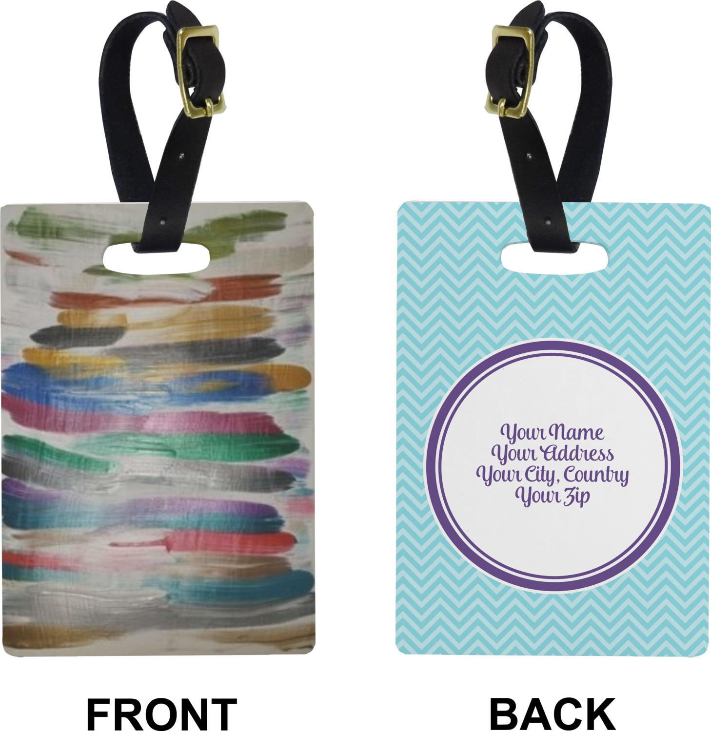 These cute luggage tags are made of a fiber-reinforced, UV-resistant plastic, making them waterproof and durable enough for both everyday use and the rugged adventures of any traveler! A leather strap with holes and a buckle is included with your purchase and can be used to attach your custom luggage tag to any suitcase, backpack, or duffel bag. You can design these travel tags as you wish; your customization will be displayed across the front, while the back will show as little or as much personal information as you want.