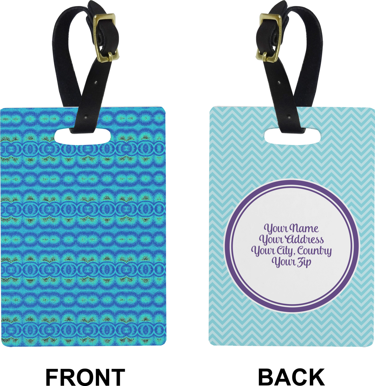 These cute luggage tags are made of a fiber-reinforced, UV-resistant plastic, making them waterproof and durable enough for both everyday use and the rugged adventures of any traveler! A leather strap with holes and a buckle is included with your purchase and can be used to attach your custom luggage tag to any suitcase, backpack, or duffel bag. You can design these travel tags as you wish; your customization will be displayed across the front, while the back will show as little or as much personal information as you want.