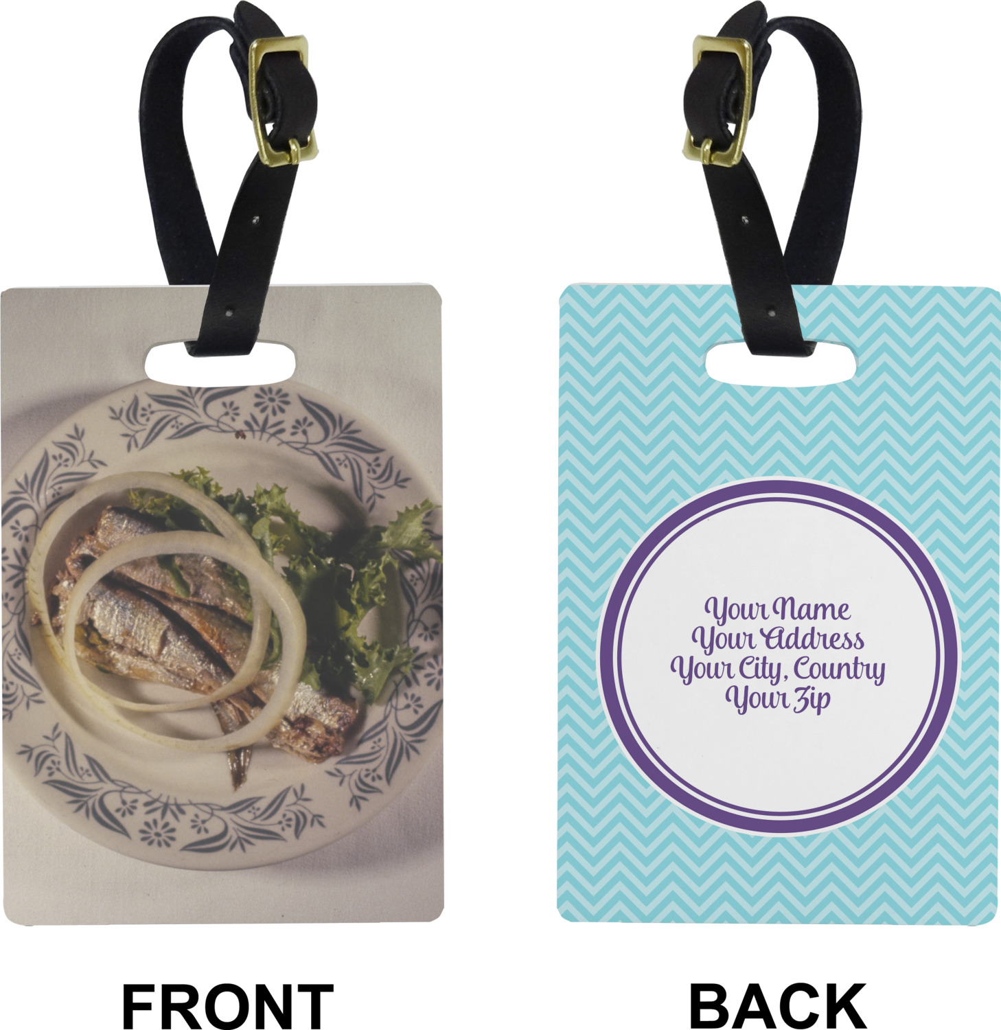 These cute luggage tags are made of a fiber-reinforced, UV-resistant plastic, making them waterproof and durable enough for both everyday use and the rugged adventures of any traveler! A leather strap with holes and a buckle is included with your purchase and can be used to attach your custom luggage tag to any suitcase, backpack, or duffel bag. You can design these travel tags as you wish; your customization will be displayed across the front, while the back will show as little or as much personal information as you want.