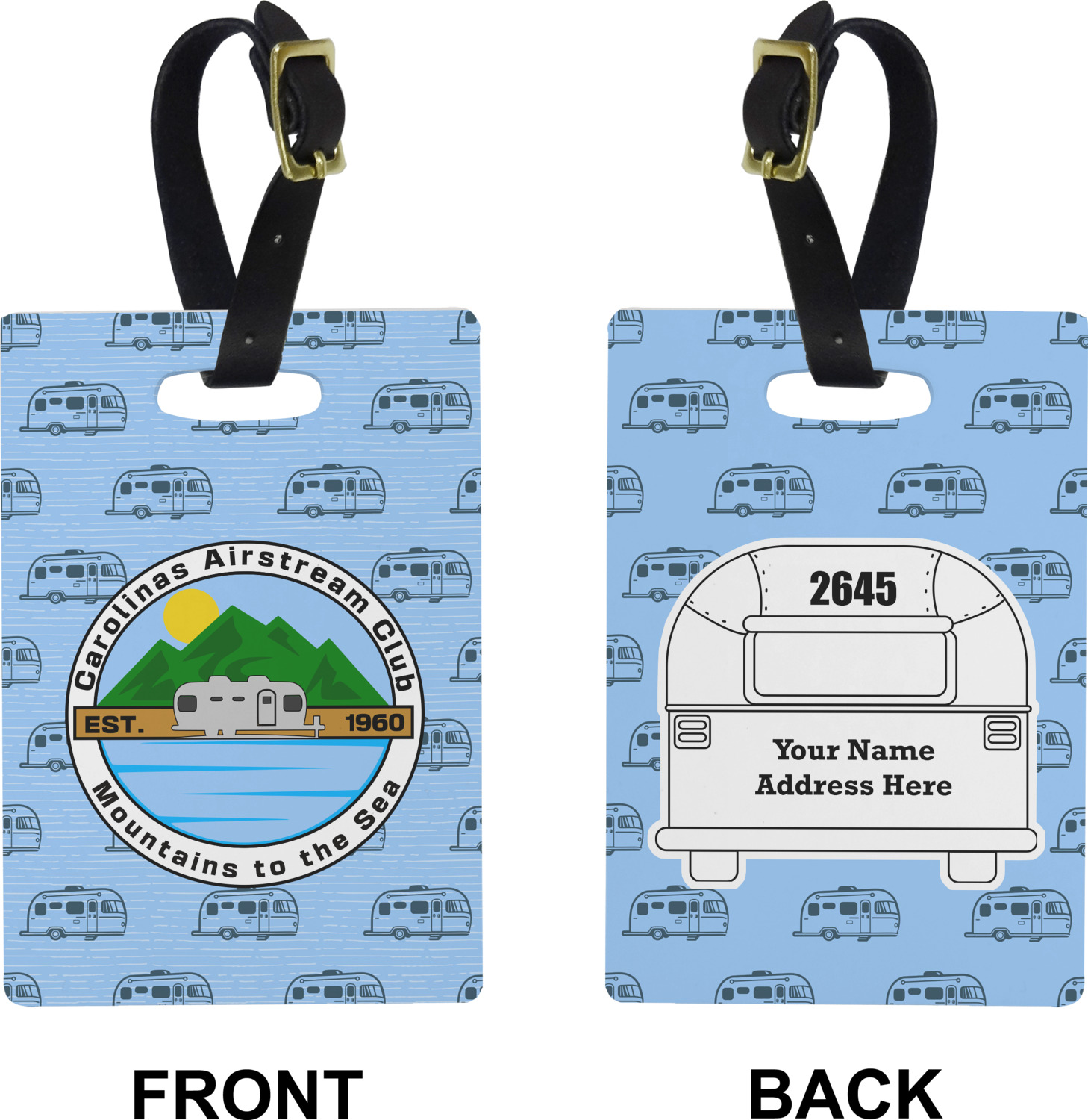 These cute luggage tags are made of a fiber-reinforced, UV-resistant plastic, making them waterproof and durable enough for both everyday use and the rugged adventures of any traveler! A leather strap with holes and a buckle is included with your purchase and can be used to attach your custom luggage tag to any suitcase, backpack, or duffel bag. You can design these travel tags as you wish; your customization will be displayed across the front, while the back will show as little or as much personal information as you want.