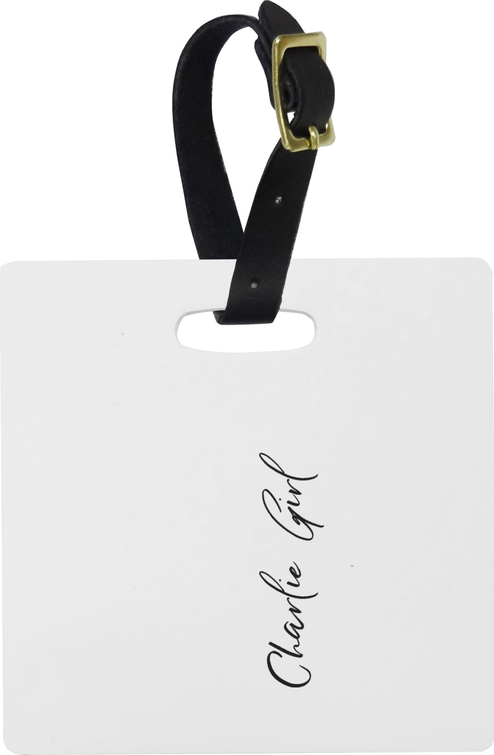 These personalized bag tags are sold in a variety of shapes, so that you may find the product that meets your vision exactly. We sell a round luggage tag, which measures at approximately 4" x 4". Our square luggage tag is about 3.5" x 3.5", while our rectangular version is 2.75" x 4 ".