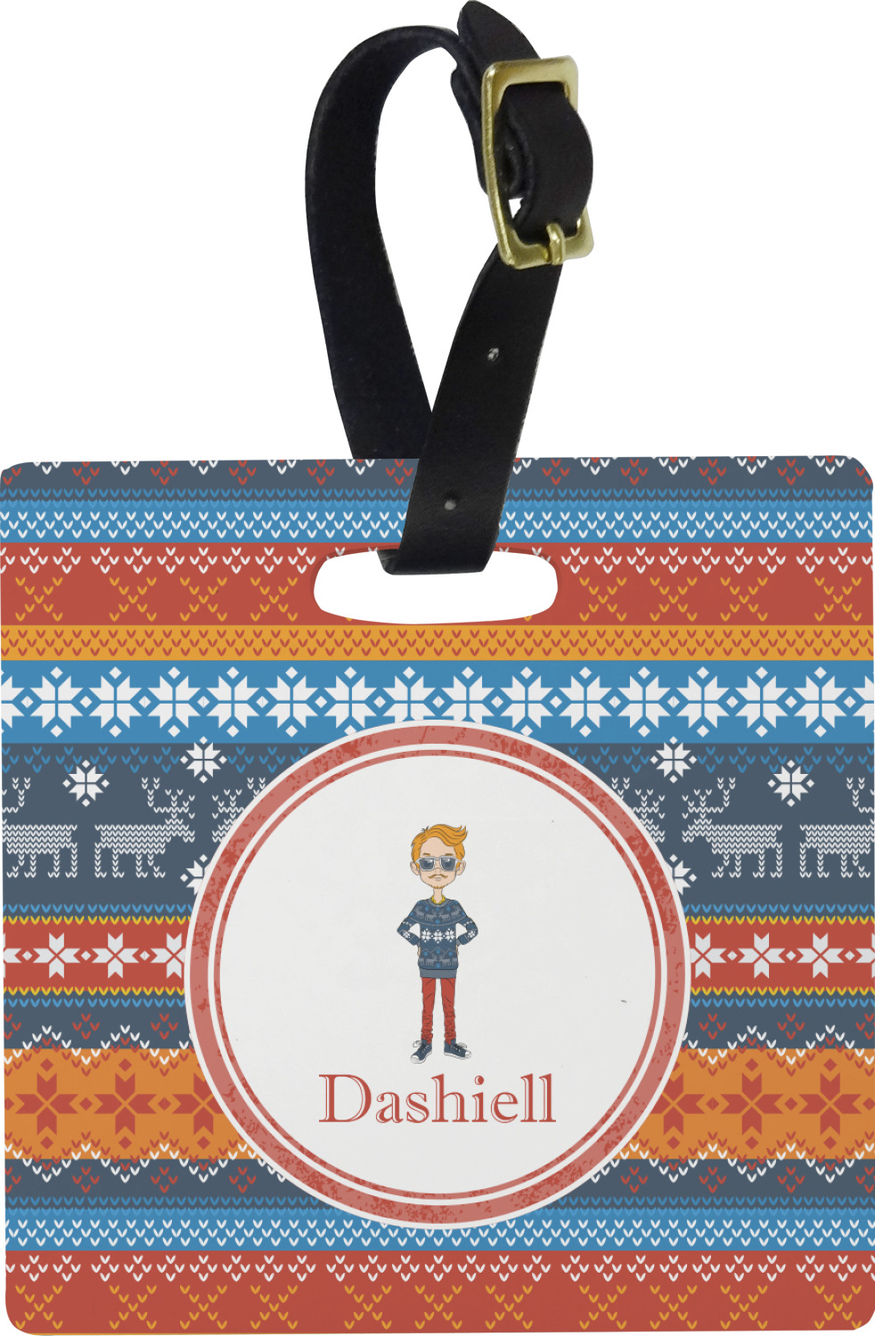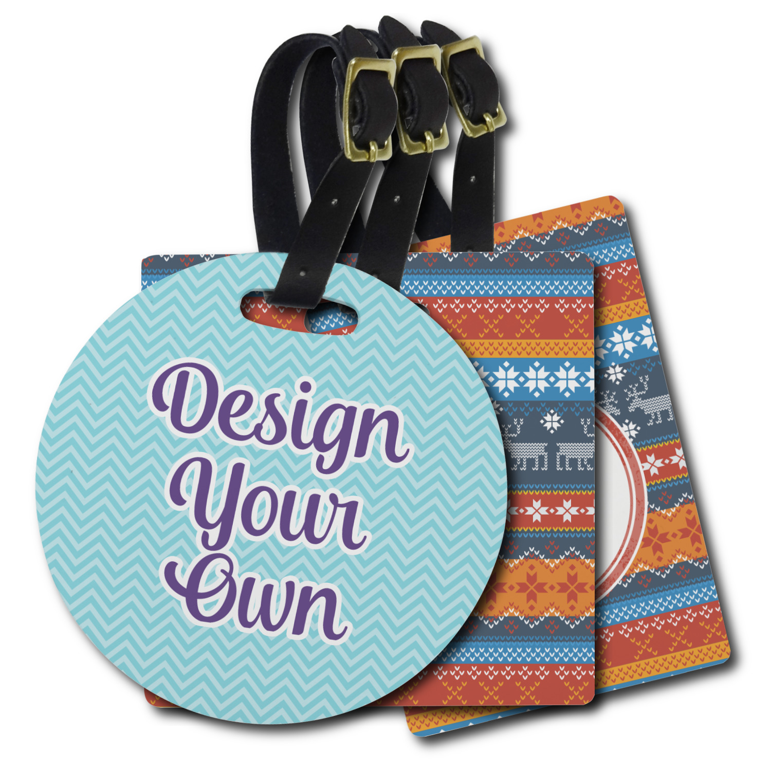These personalized bag tags are sold in a variety of shapes, so that you may find the product that meets your vision exactly. We sell a round luggage tag, which measures at approximately 4" x 4". Our square luggage tag is about 3.5" x 3.5", while our rectangular version is 2.75" x 4 ".