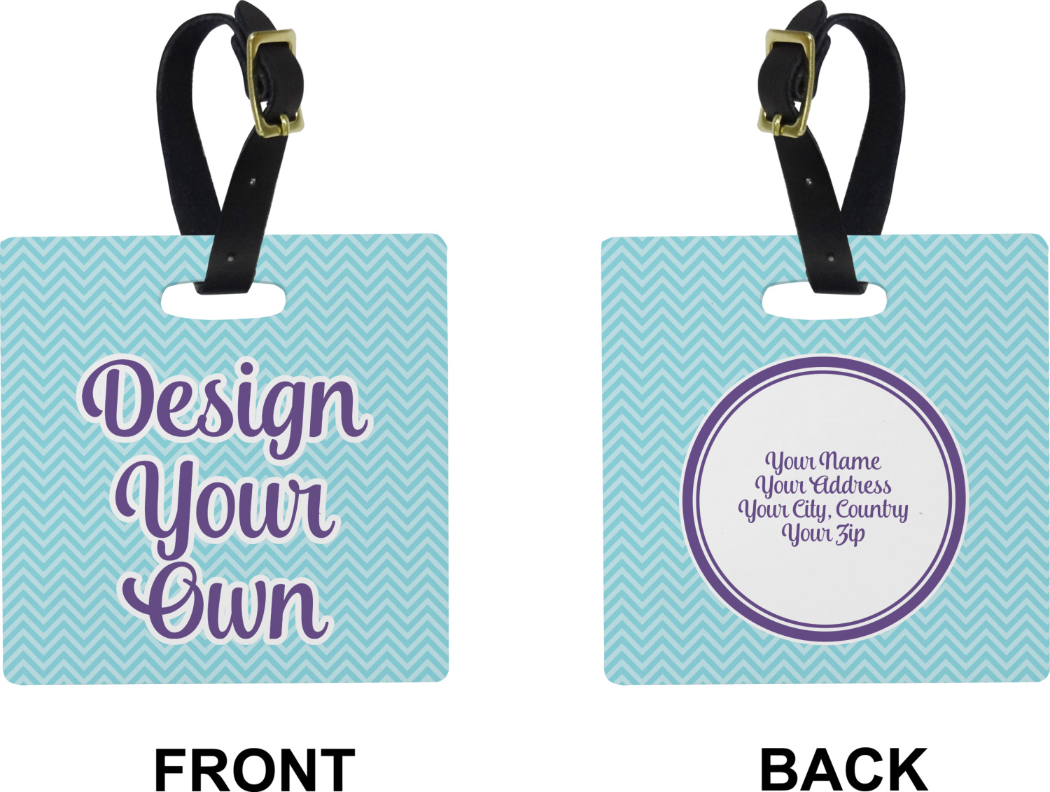 These cute luggage tags are made of a fiber-reinforced, UV-resistant plastic, making them waterproof and durable enough for both everyday use and the rugged adventures of any traveler! A leather strap with holes and a buckle is included with your purchase and can be used to attach your custom luggage tag to any suitcase, backpack, or duffel bag. You can design these travel tags as you wish; your customization will be displayed across the front, while the back will show as little or as much personal information as you want.