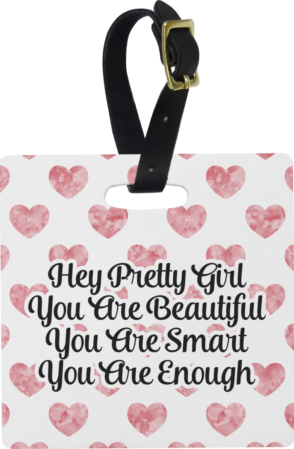 These cute luggage tags are made of a fiber-reinforced, UV-resistant plastic, making them waterproof and durable enough for both everyday use and the rugged adventures of any traveler! A leather strap with holes and a buckle is included with your purchase and can be used to attach your custom luggage tag to any suitcase, backpack, or duffel bag. You can design these travel tags as you wish; your customization will be displayed across the front, while the back will show as little or as much personal information as you want.