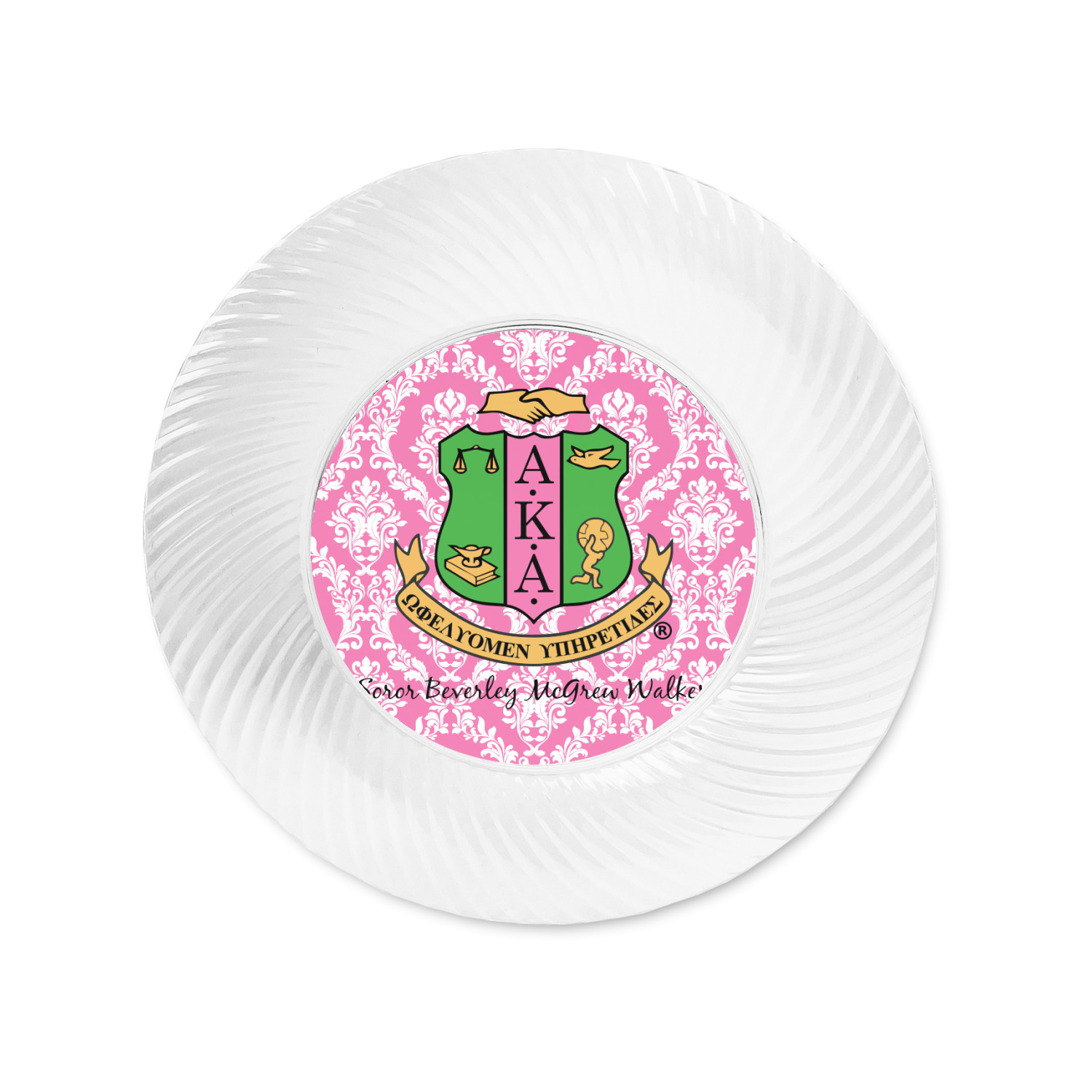 Made from a beautiful clear plastic plate as a base, your design is printed to the underside of the plate. The outside of the plate has a classic swirl texture to it for a high quality look and feel.