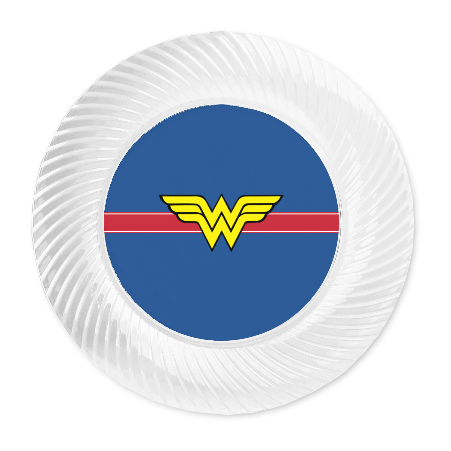 Made from a beautiful clear plastic plate as a base, your design is printed to the underside of the plate. The outside of these disposable plates has a classic swirl texture to it for a high quality look and feel.