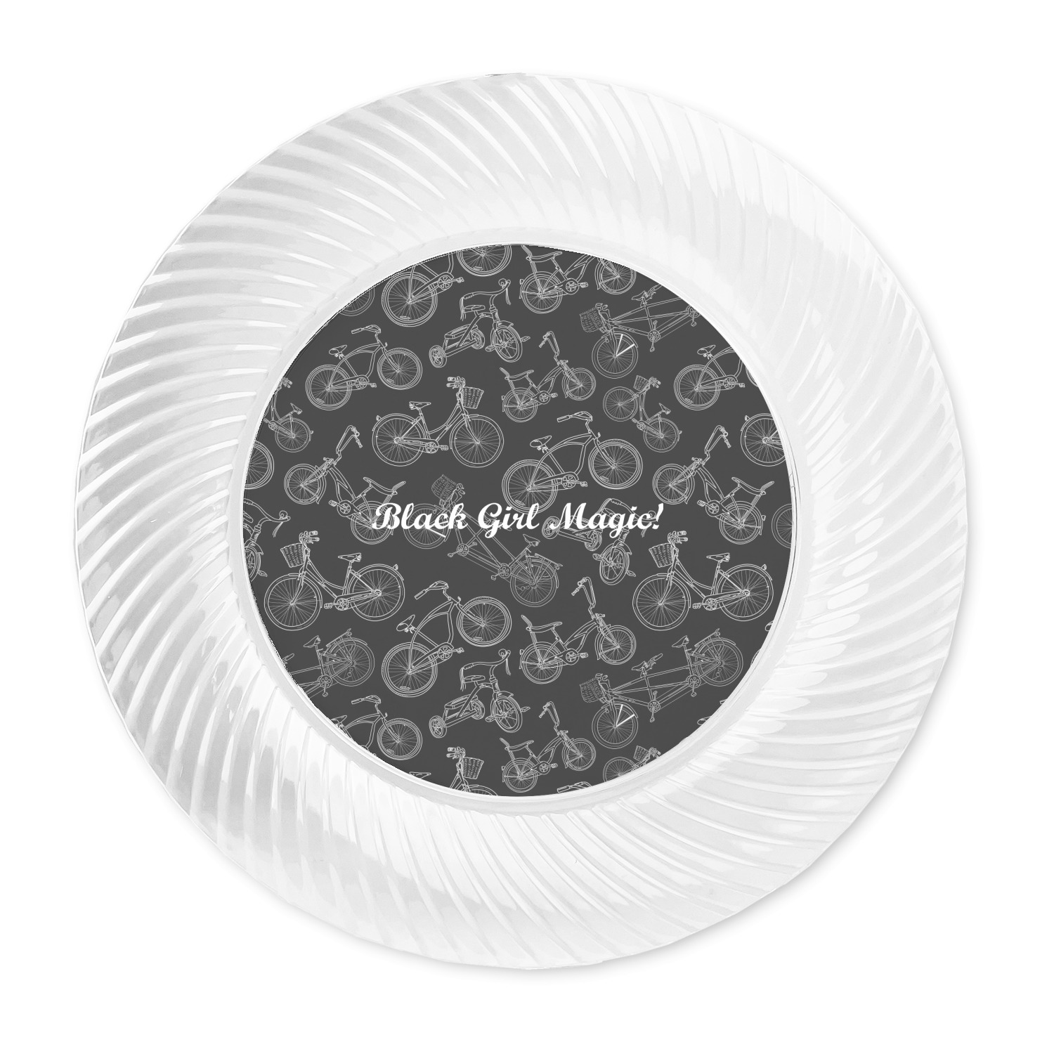 Made from a beautiful clear plastic plate as a base, your design is printed to the underside of the plate. The outside of these disposable plates has a classic swirl texture to it for a high quality look and feel.