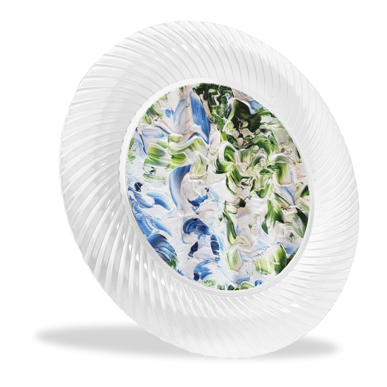 Made from a beautiful clear plastic plate as a base, your design is printed to the underside of the plate. The outside of these disposable plates has a classic swirl texture to it for a high quality look and feel.