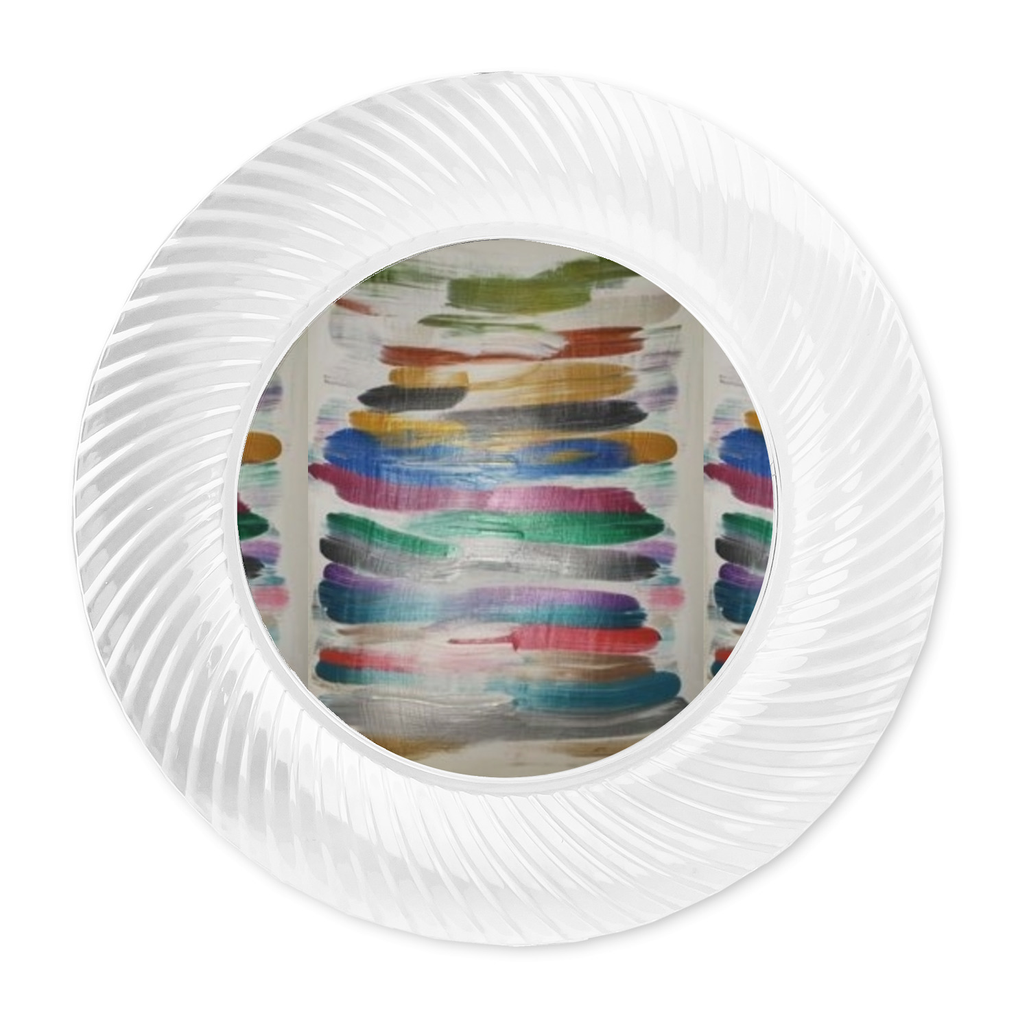 Made from a beautiful clear plastic plate as a base, your design is printed to the underside of the plate. The outside of these disposable plates has a classic swirl texture to it for a high quality look and feel.