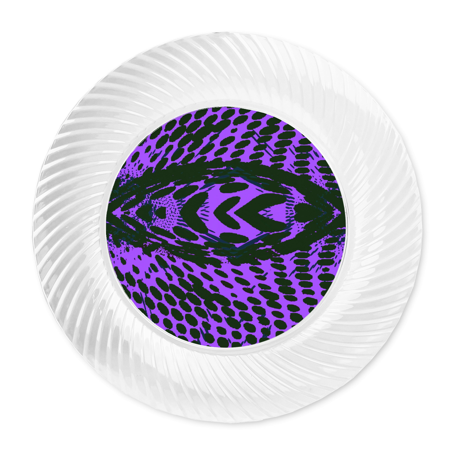 Made from a beautiful clear plastic plate as a base, your design is printed to the underside of the plate. The outside of these disposable plates has a classic swirl texture to it for a high quality look and feel.