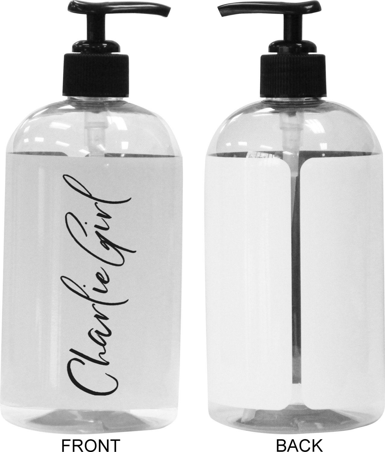 We adhere and wrap your custom printed design around the clear plastic bottle; there is a slight gap at the back for you to see the liquid level. Your design is printed on high gloss vinyl with eco-solvent inks and completely waterproof and will not fade or deteriorate over time. The vinyl is machine cut and adhered by hand to the clear plastic bottle.