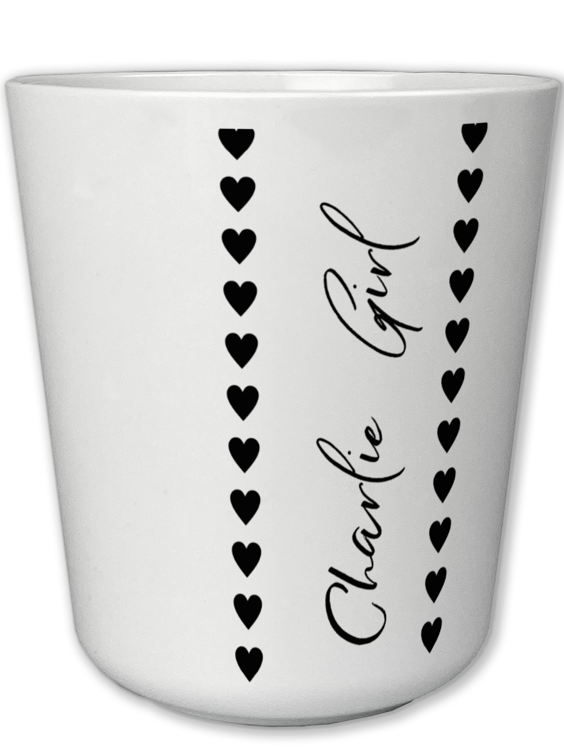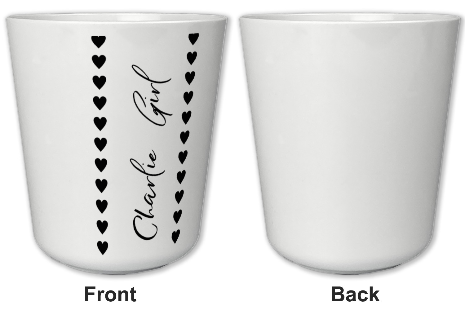 Made from a durable plastic, these tumbler cups are strong enough to withstand daily use and are perfect for young children. Each of these personalized plastic cups holds 6 ounces and measure at approximately 3" x 3" x 3.25". Place them in the bathroom as a rinsing cup, or give them to your kids during mealtimes. These 6 oz. plastic cups are BPA free, microwave and dishwasher safe, for your convenience. Your personalized design is displayed across the entire outside of this cup, while the inside is white in color to make your customization really stand out.
