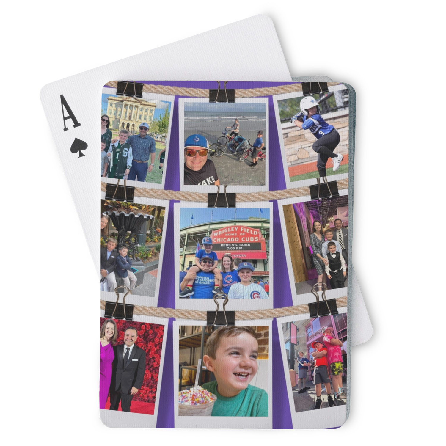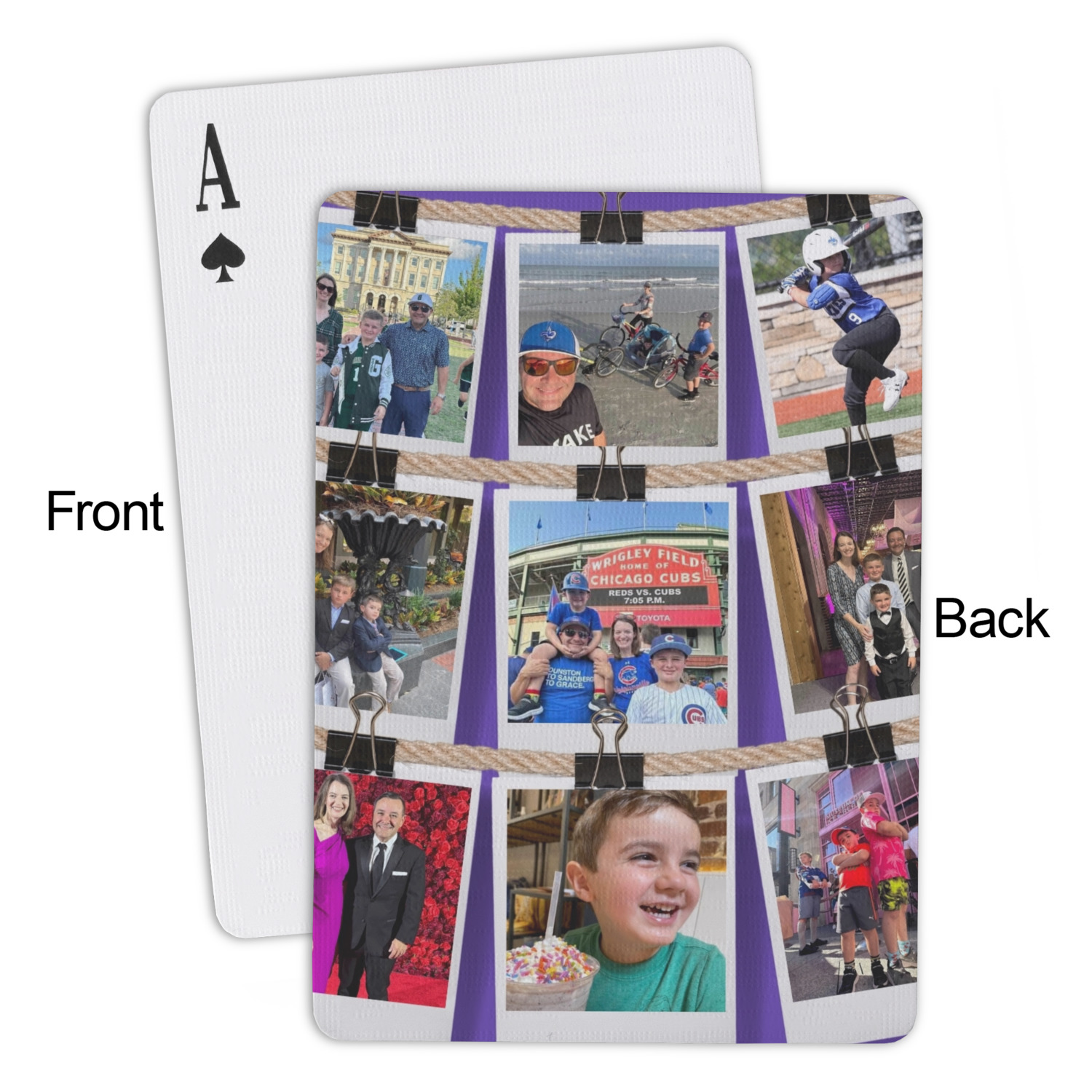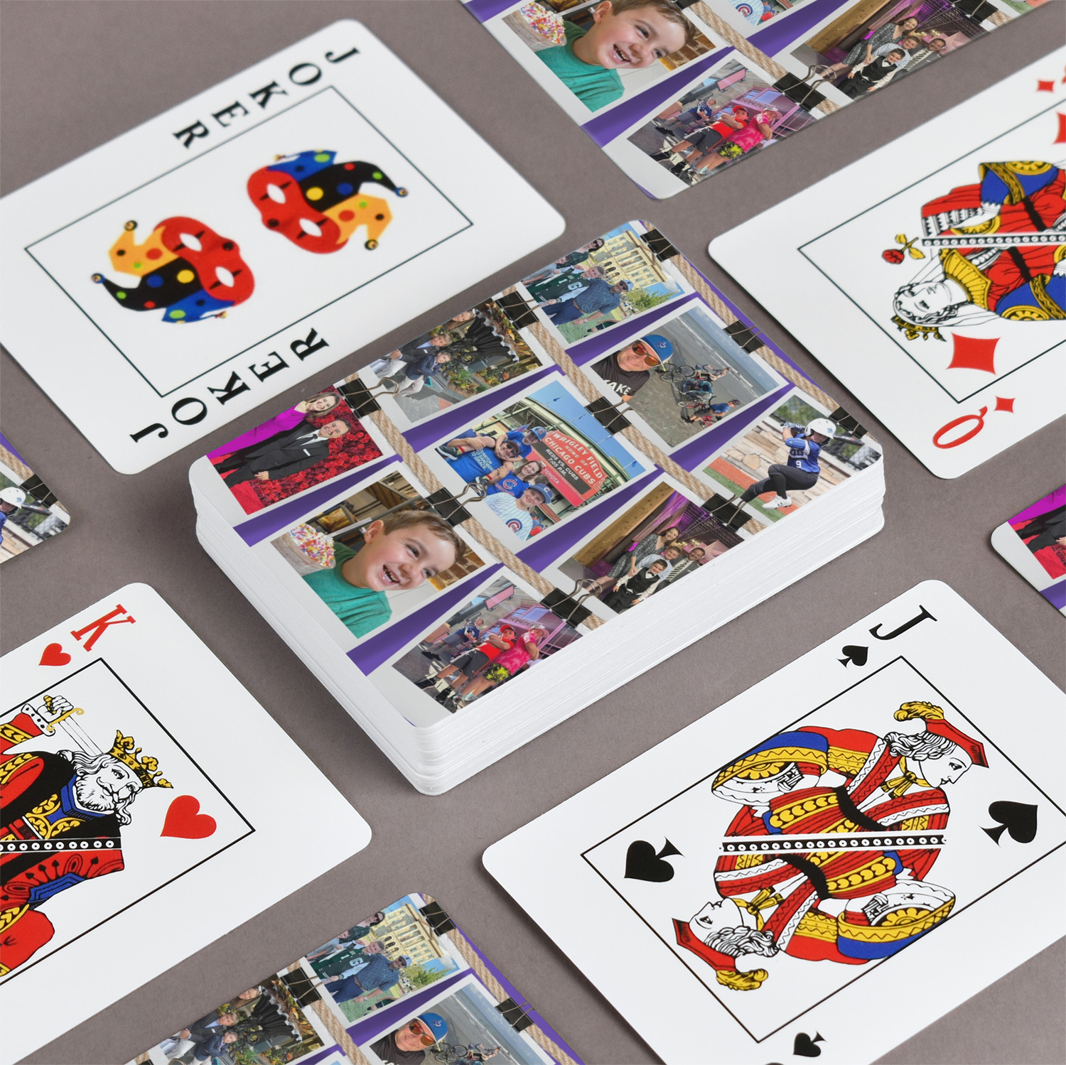 Our playing cards are perfect for family game nights or poker nights. A deck of customized playing cards ups the level of fun & entertainment to your game or poker nights. Imagine playing cards customized to match the theme of your game room, or game night, or that special event, or occasion with gambling tables!
