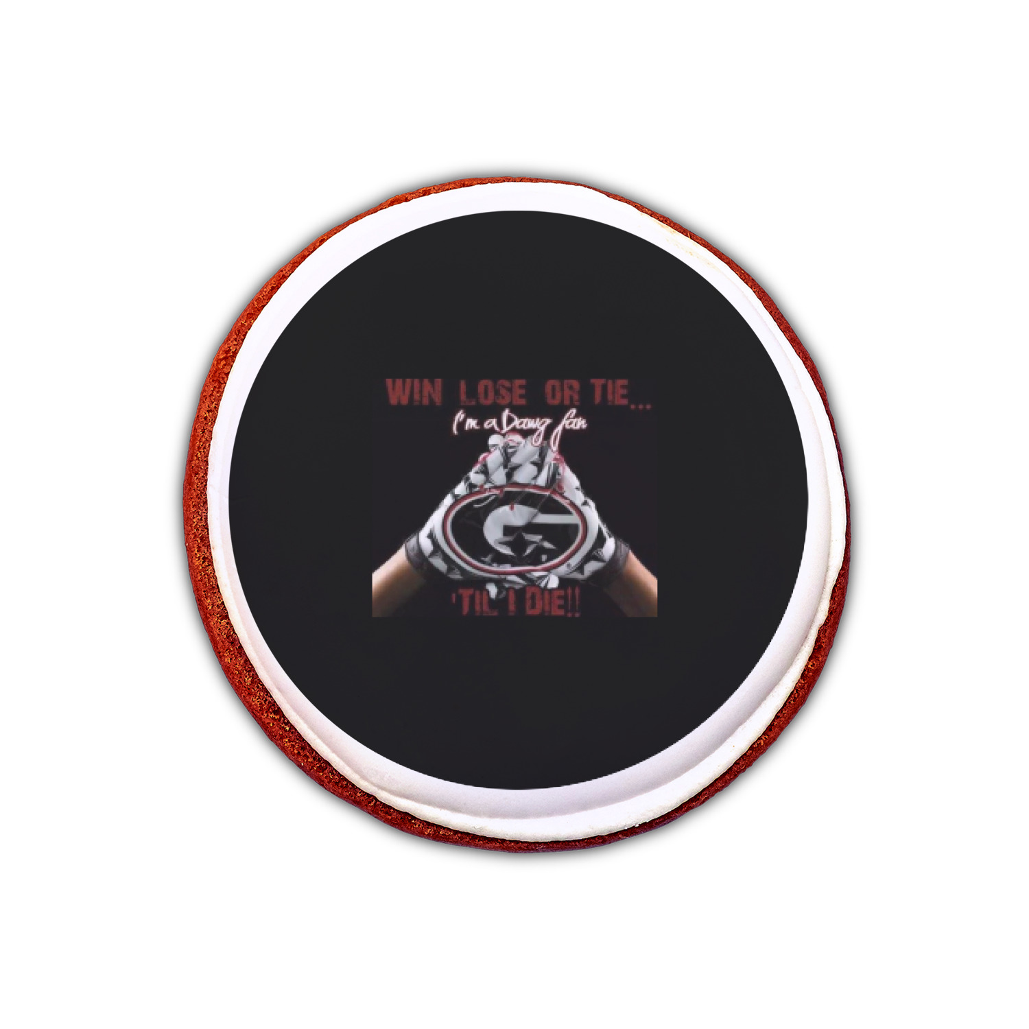 Your customized cookie toppers can be placed on top of any dessert with an icing top.The icing helps adhere the cookie topper to the dessert.