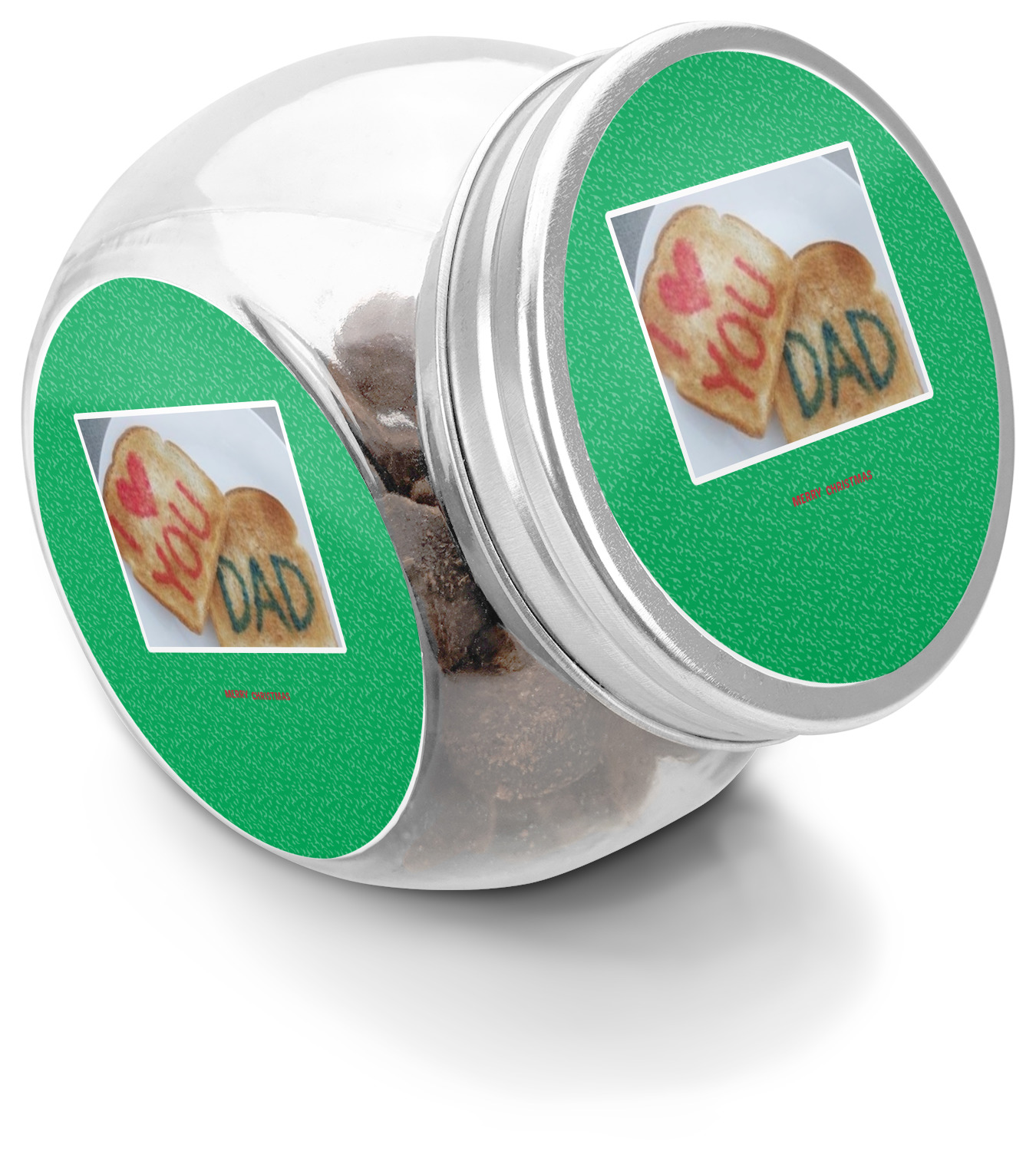 This treat jar is an excellent way to store treats for your favorite canine or feline. Moreover, their delicate, classy appearance makes them a tasteful addition to your countertop's décor. Crafted from clear glass, its unique construction and silver metal, screw-on lid allows for quick and easy access. Three, permanent, vinyl stickers are applied to both sides of the jar and lid, presenting your personalized design. The base of this glass, dog treat jar is 3.4" x 4.75", and the jar stands at 5" tall. Though on the smaller side, this jar is best suited for smaller treats or training treats.