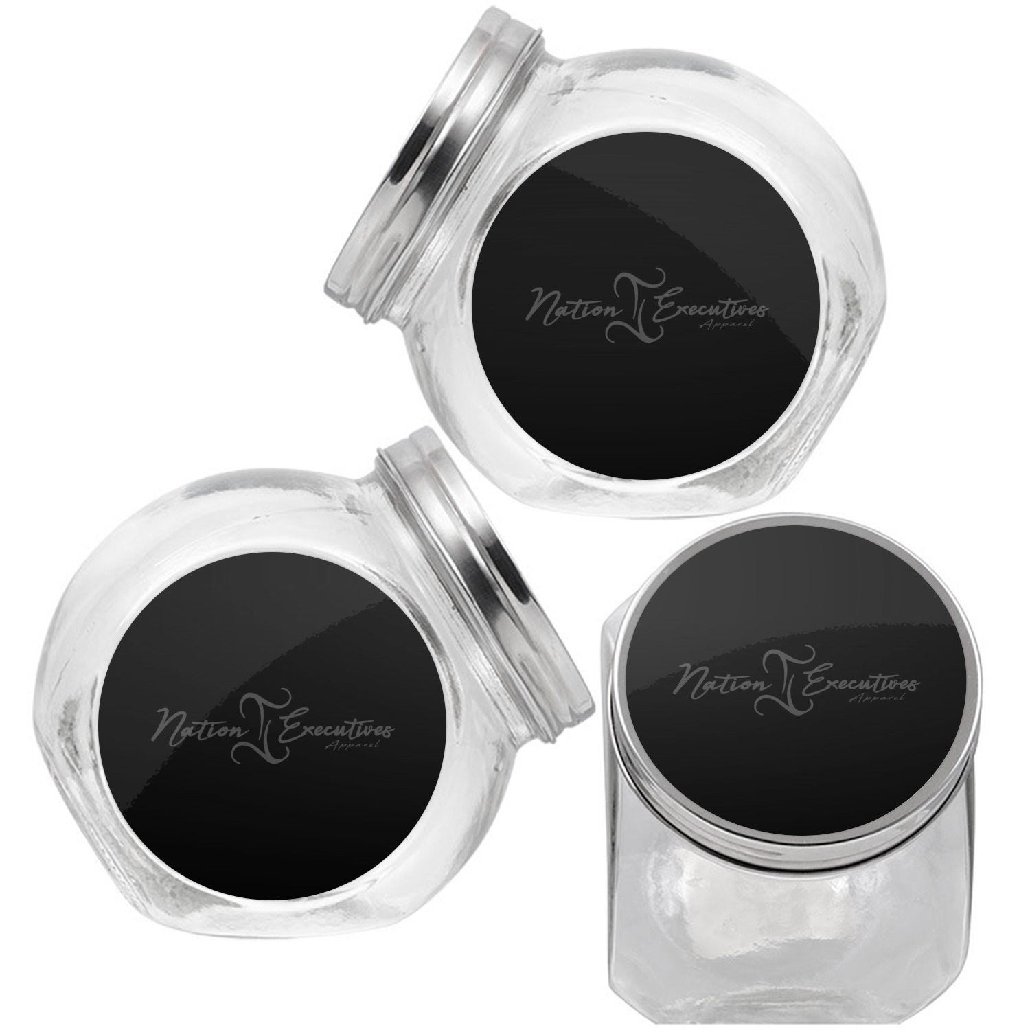 This treat jar is an excellent way to store treats for your favorite canine or feline. Moreover, their delicate, classy appearance makes them a tasteful addition to your countertop's décor. Crafted from clear glass, its unique construction and silver metal, screw-on lid allows for quick and easy access. Three, permanent, vinyl stickers are applied to both sides of the jar and lid, presenting your personalized design. The base of this glass, dog treat jar is 3.4" x 4.75", and the jar stands at 5" tall. Though on the smaller side, this jar is best suited for smaller treats or training treats.