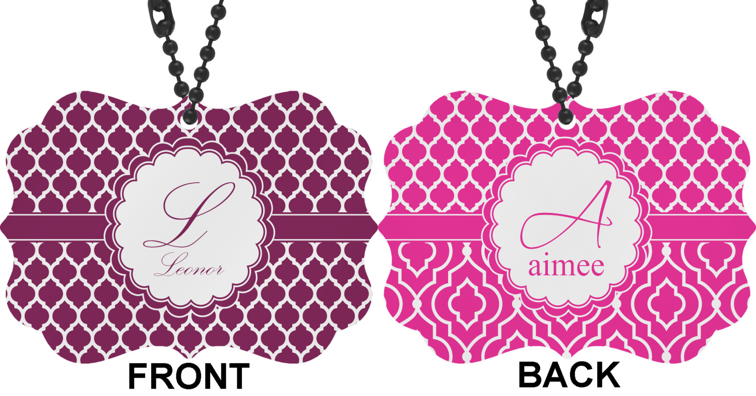 Crafted from a sturdy aluminum, these mirror ornaments proudly flaunt your personalized design(s) on both sides. A glossy finish is applied to your ornament, to accentuate the vibrancy of your design. A 10”, black, beaded chain accompanies your rear view mirror accessory, but can be adjusted to meet your desired length. We have this charm in two shapes; Benelux and Berlin. The Benelux measures at 4 by 2.5 inches, and is 0.045 inches thick. The Berlin measures at 4 by 2.75 inches and 0.045 inches deep.