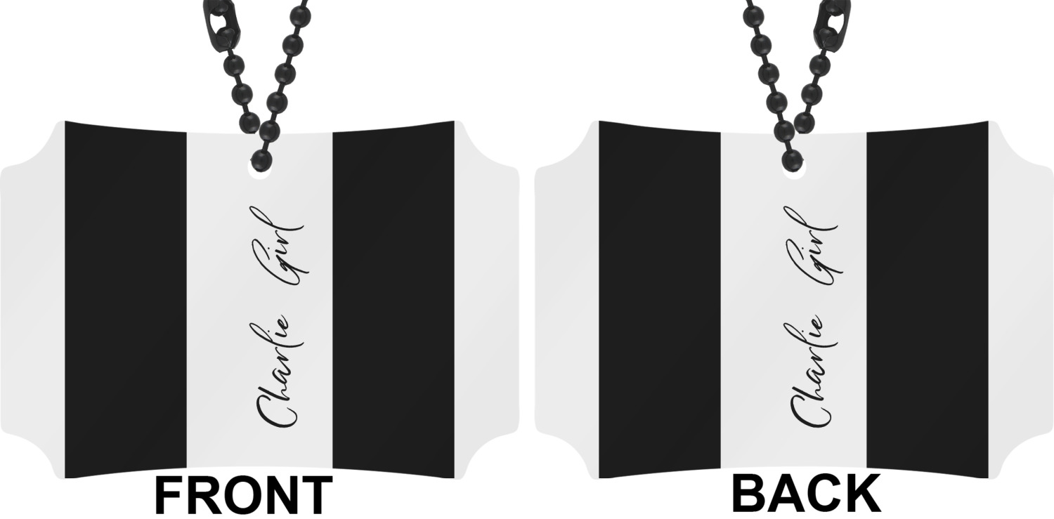 Crafted from a sturdy aluminum, these mirror ornaments proudly flaunt your personalized design(s) on both sides. A glossy finish is applied to your ornament, to accentuate the vibrancy of your design. A 10”, black, beaded chain accompanies your rear view mirror accessory, but can be adjusted to meet your desired length. We have this charm in two shapes; Benelux and Berlin. The Benelux measures at 4 by 2.5 inches, and is 0.045 inches thick. The Berlin measures at 4 by 2.75 inches and 0.045 inches deep.