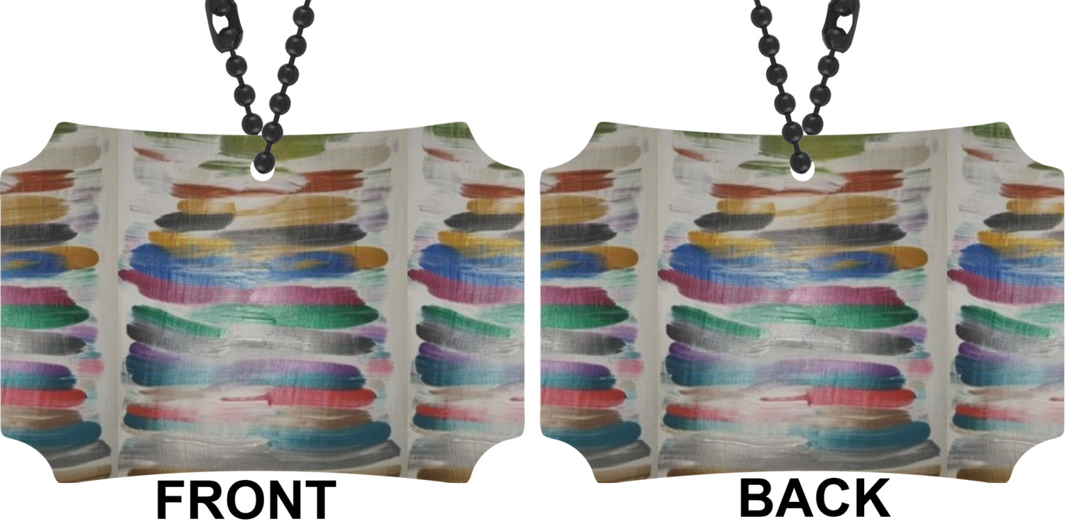 Crafted from a sturdy aluminum, these mirror ornaments proudly flaunt your personalized design(s) on both sides. A glossy finish is applied to your ornament, to accentuate the vibrancy of your design. A 10”, black, beaded chain accompanies your rear view mirror accessory, but can be adjusted to meet your desired length. We have this charm in two shapes; Benelux and Berlin. The Benelux measures at 4 by 2.5 inches, and is 0.045 inches thick. The Berlin measures at 4 by 2.75 inches and 0.045 inches deep.