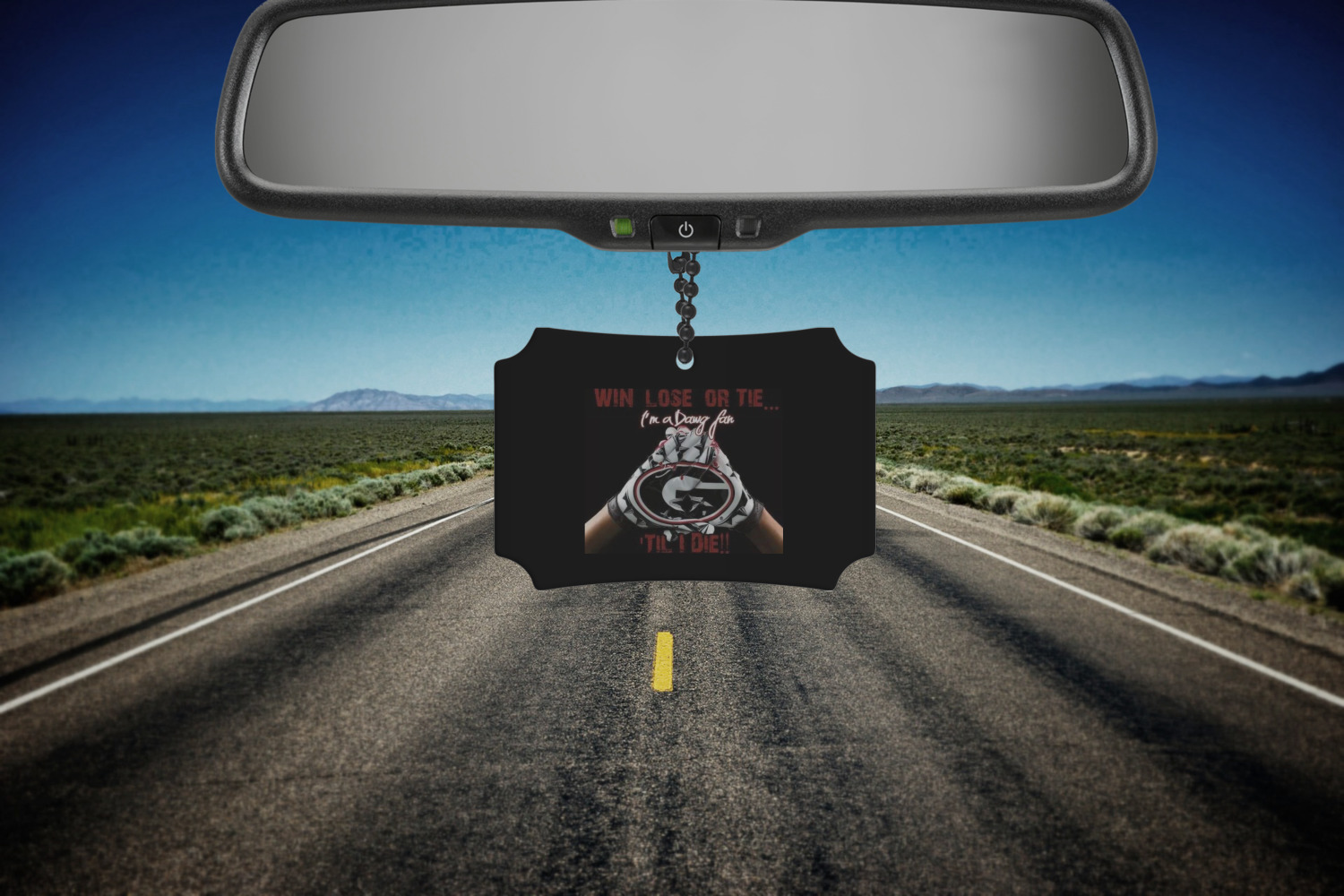 Crafted from a sturdy aluminum, these mirror ornaments proudly flaunt your personalized design(s) on both sides. A glossy finish is applied to your ornament, to accentuate the vibrancy of your design. A 10”, black, beaded chain accompanies your rear view mirror accessory, but can be adjusted to meet your desired length. We have this charm in two shapes; Benelux and Berlin. The Benelux measures at 4 by 2.5 inches, and is 0.045 inches thick. The Berlin measures at 4 by 2.75 inches and 0.045 inches deep.