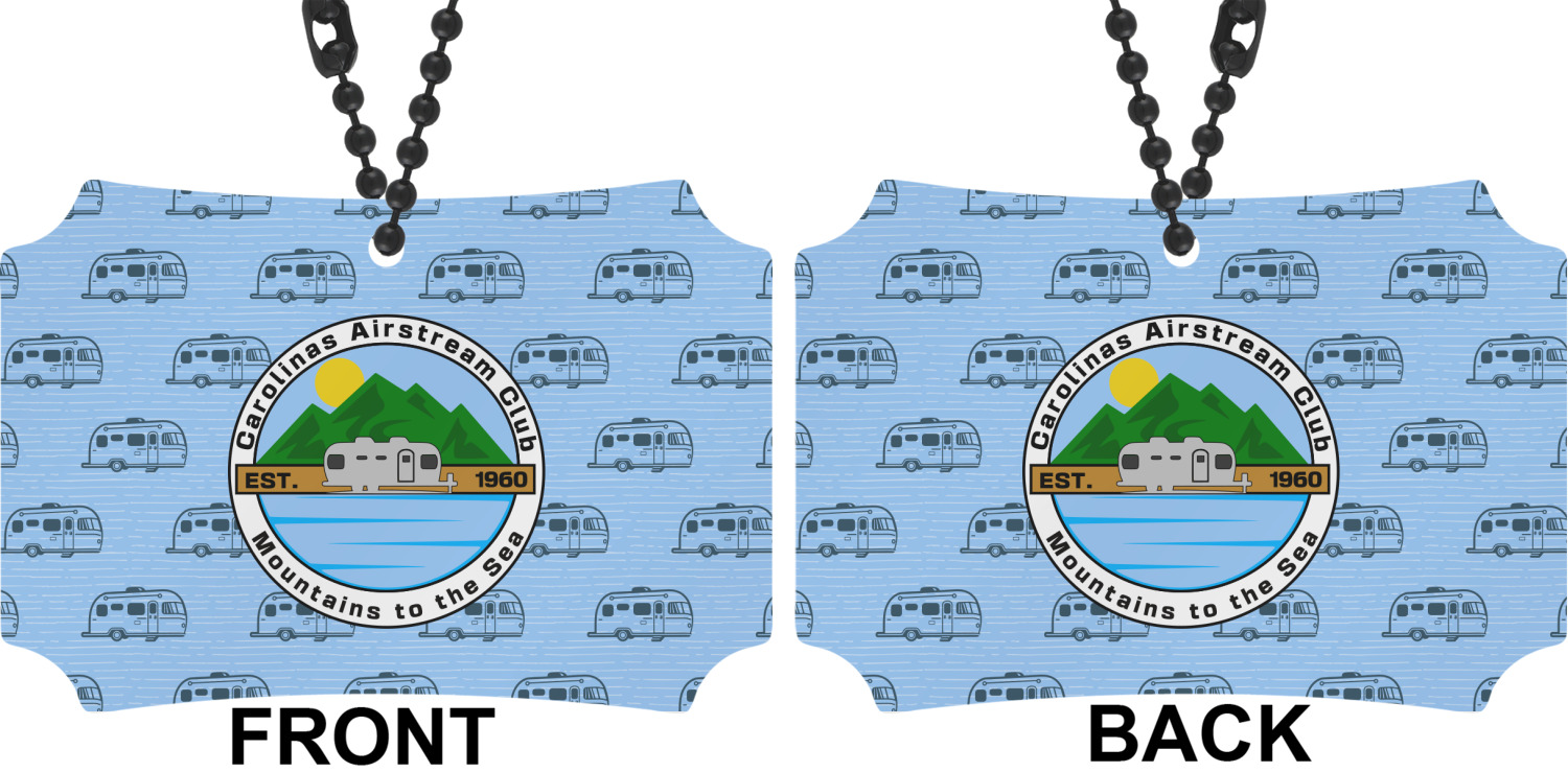 Crafted from a sturdy aluminum, these mirror ornaments proudly flaunt your personalized design(s) on both sides. A glossy finish is applied to your ornament, to accentuate the vibrancy of your design. A 10”, black, beaded chain accompanies your rear view mirror accessory, but can be adjusted to meet your desired length. We have this charm in two shapes; Benelux and Berlin. The Benelux measures at 4 by 2.5 inches, and is 0.045 inches thick. The Berlin measures at 4 by 2.75 inches and 0.045 inches deep.