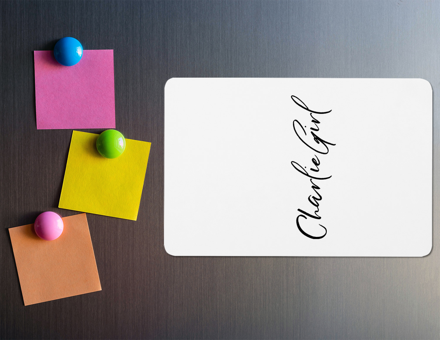 Our custom fridge magnets are crafted from aluminum, and feature a magnetic backing that allows it to adhere to magnetic surfaces, such as your fridge, a locker, dry erase boards, and more! The entire face of the magnet displays your design, and the glossy finish makes the surface of your magnet shine. This custom magnet measures at 2 by 3 inches.