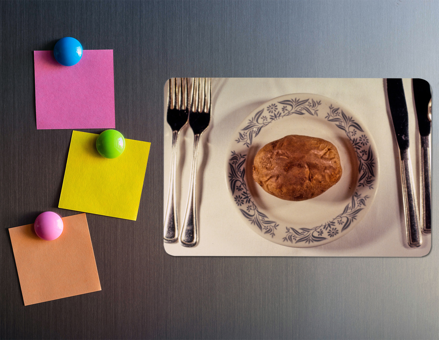 Our custom fridge magnets are crafted from aluminum, and feature a magnetic backing that allows it to adhere to magnetic surfaces, such as your fridge, a locker, dry erase boards, and more! The entire face of the magnet displays your design, and the glossy finish makes the surface of your magnet shine. This custom magnet measures at 2 by 3 inches.
