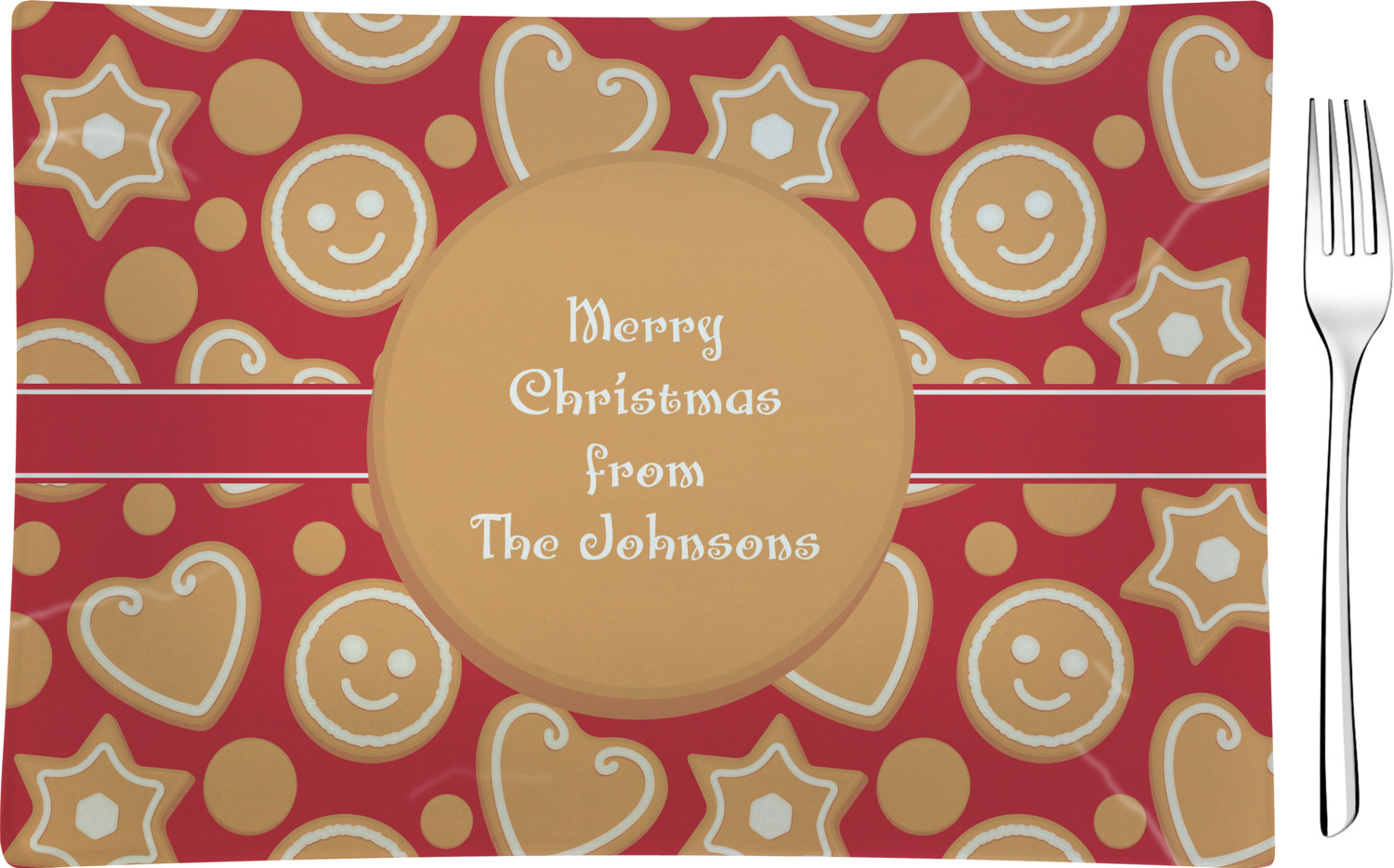 Gingerbread Cookies Design on Custom Rectangular Glass Appetizer / Dessert Plate