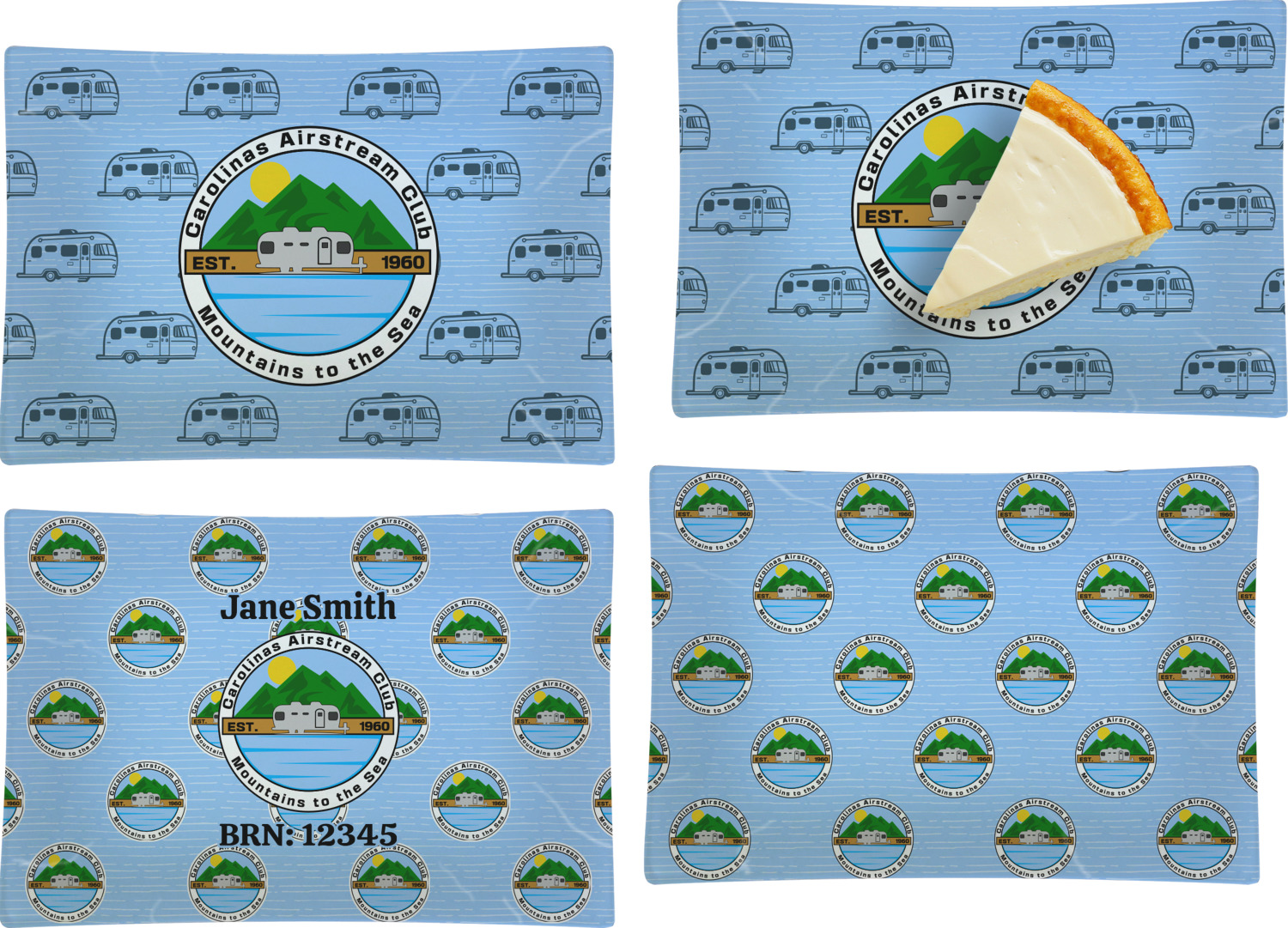 Carolina Airstream Club Design on Custom Rectangular Glass Appetizer / Dessert Plate