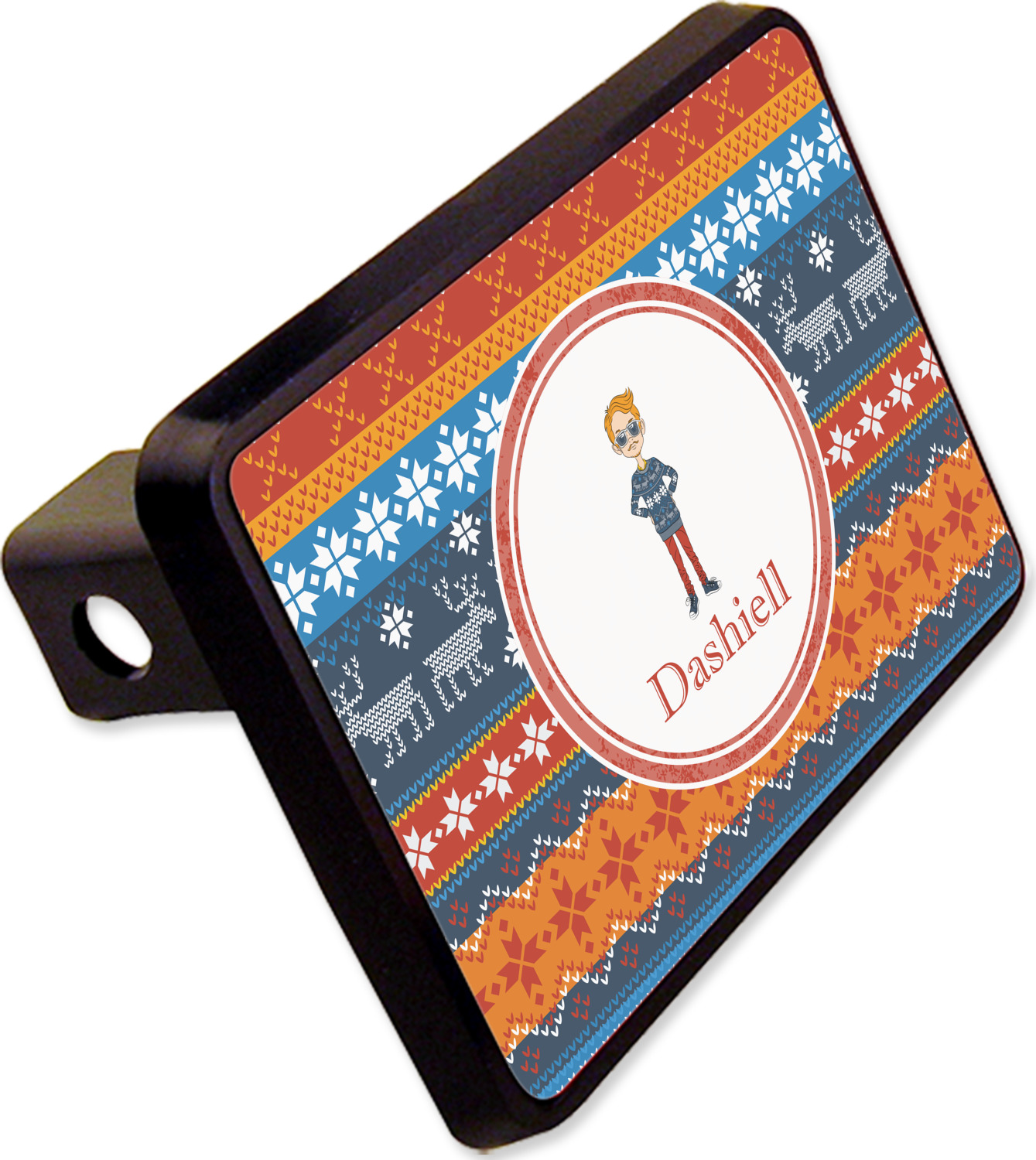 Hipster Winter Design on Custom Rectangular Trailer Hitch Cover - 2"