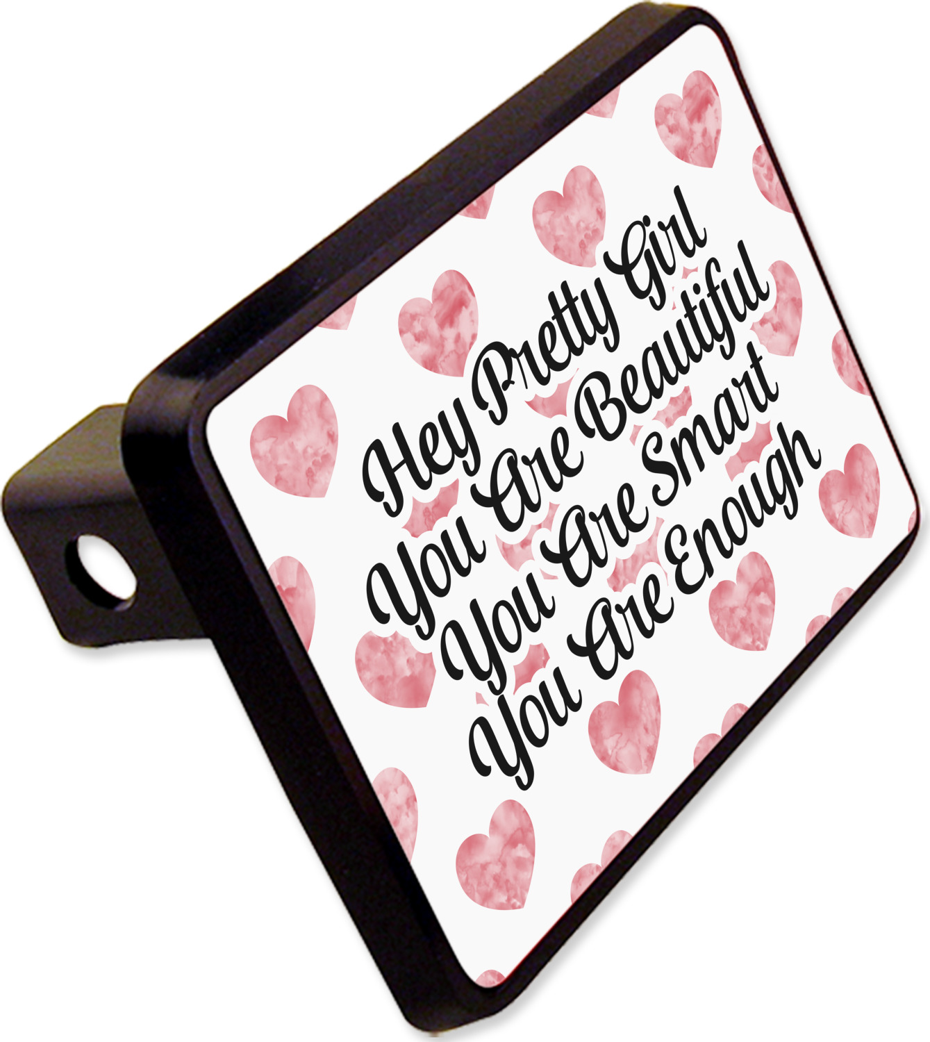 Our receiver hitch covers are molded, durable, and available in a size that fits 2in., square receiver holes. This model is best suited for a Class 3 or Class 4 hitch, but please consult our hitch sizing guide to make an informed purchase. We print your design on the surface of the rectangular cover, while the rest of the cover is a sleek, black color. The design's vibrancy will last up to 2 years in harsh sunlight. Designed for easy attachment, the cover slides easily into your trailer hitch and can be secured using a pin (not included).