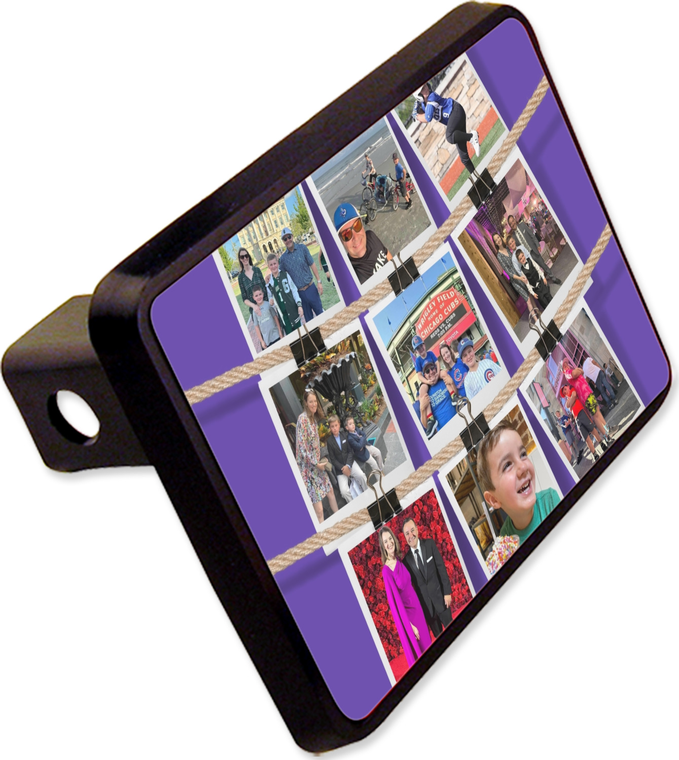 Our receiver hitch covers are molded, durable, and available in a size that fits 2in., square receiver holes. This model is best suited for a Class 3 or Class 4 hitch, but please consult our hitch sizing guide to make an informed purchase. We print your design on the surface of the rectangular cover, while the rest of the cover is a sleek, black color. The design's vibrancy will last up to 2 years in harsh sunlight. Designed for easy attachment, the cover slides easily into your trailer hitch and can be secured using a pin (not included).