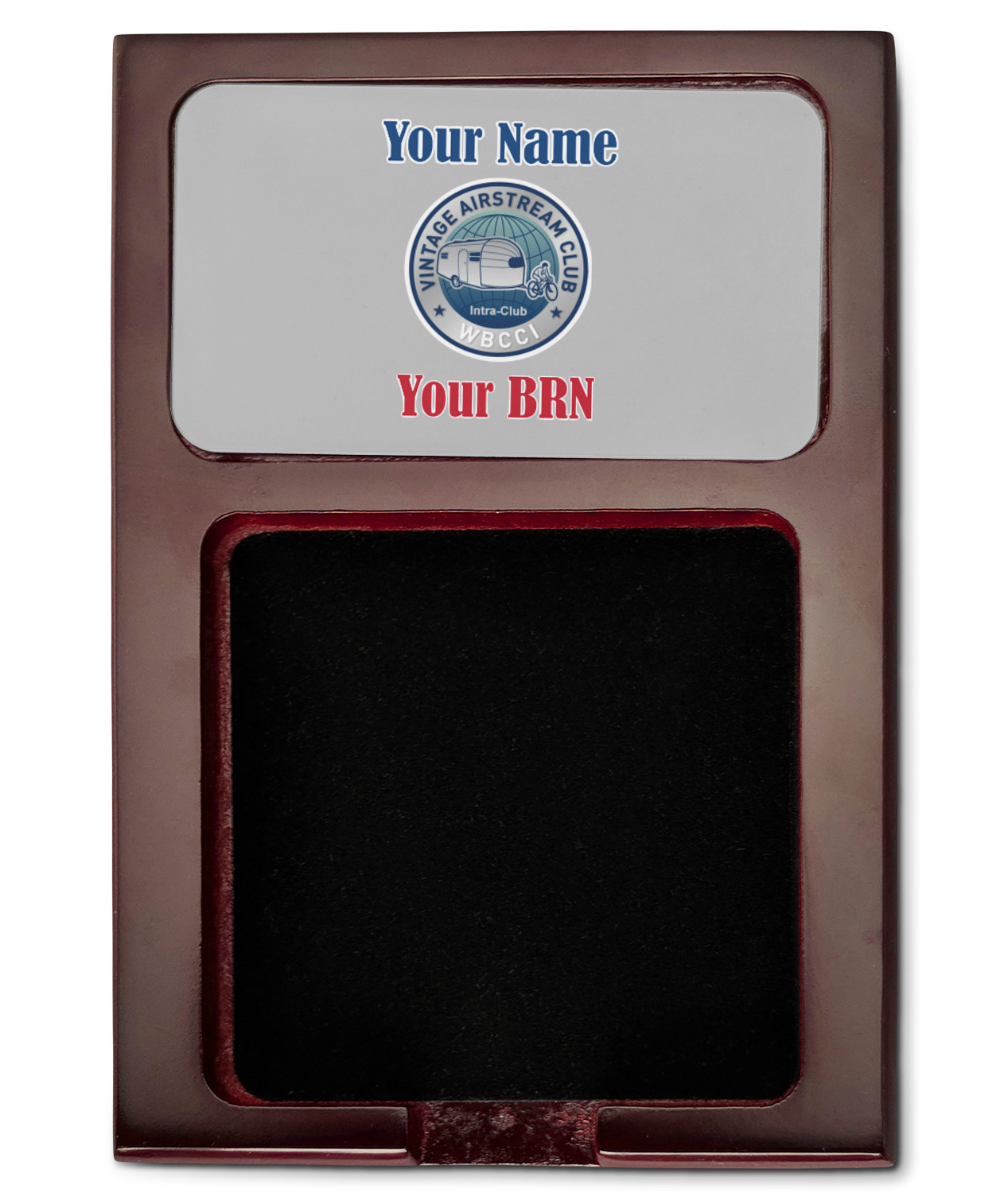 Crafted from a fine mahogany, this post it note holder is in the shade of a dark, cherry color. The dispenser itself is about 4.25 by 6.25 by 0.75 inches. You can place your 3 by 3 inch sticky notes in the indentation below the nameplate. We print your customization onto the nameplate that rests above the velvety indentation.