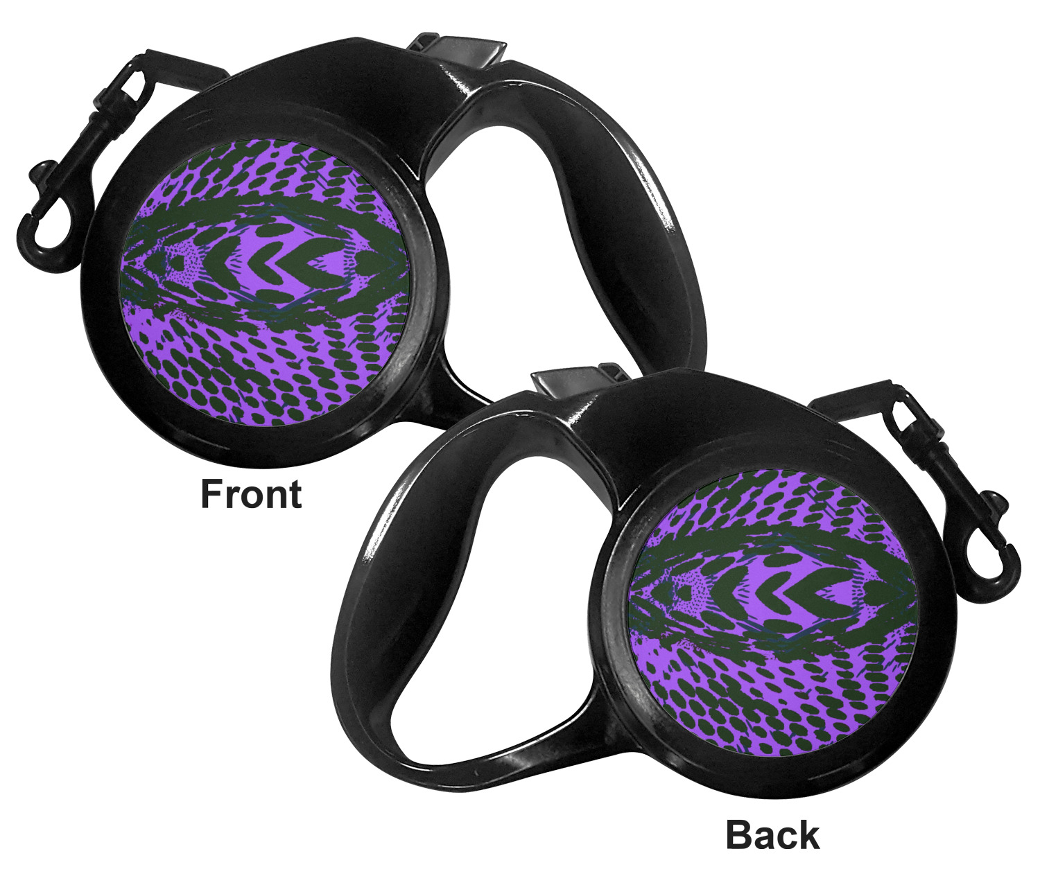 The leash's plastic handle is accommodating of your grip and displays your customization on both sides. The dog leash also features the traditional bolt snap clip, for easy fastening to your dog's collar. The leash and leash handle themselves are both black in color.