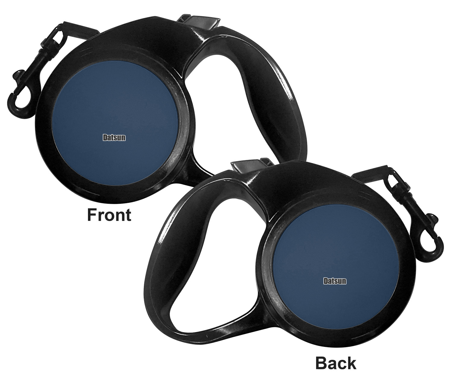 The leash's plastic handle is accommodating of your grip and displays your customization on both sides. The dog leash also features the traditional bolt snap clip, for easy fastening to your dog's collar. The leash and leash handle themselves are both black in color.