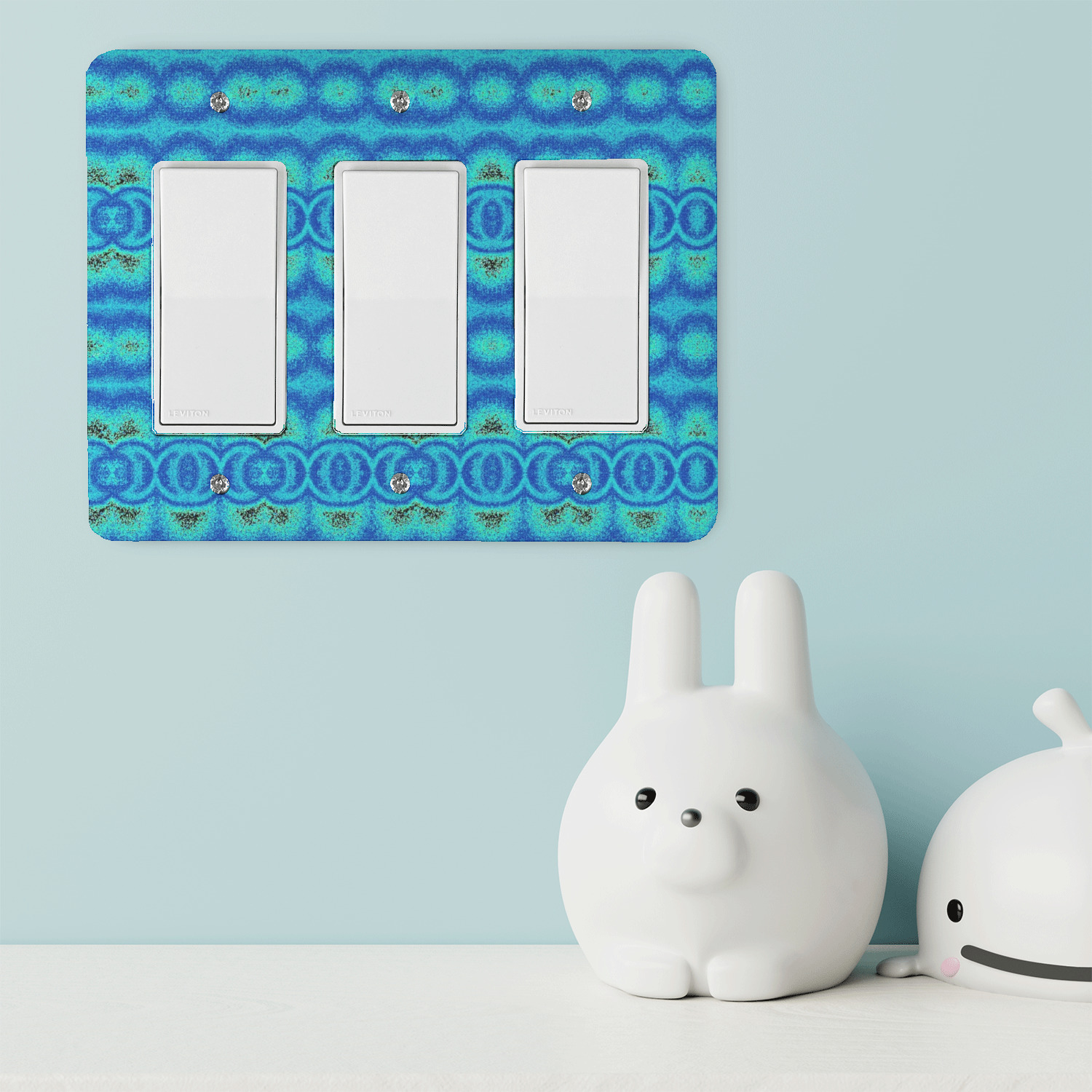 Made from metal and UL listed, these rocker switch covers are durable and made in the USA. The full color design of your choice is printed on the front. The satin finish on the surface is sure to match the paint finish perfectly. The included screws fit standard receptacles and have a white head on them to blend into most designs.