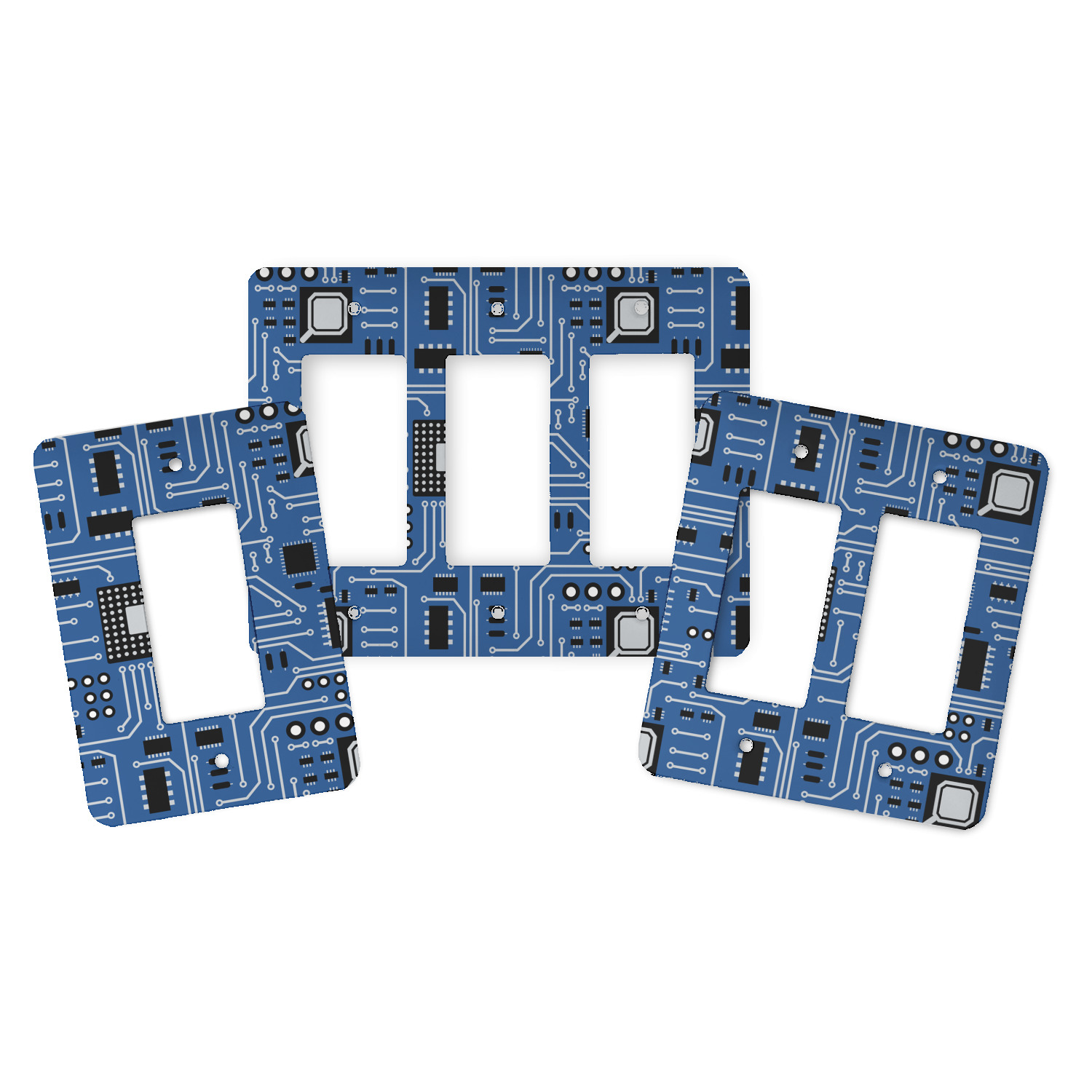 Available in a single, double or triple switch configuration, these rocker switch covers are perfect for every room of your home. The single switch cover measures 5" tall and 3.5" wide. The double is 5" tall and 4.75" wide. The triple switch cover measures at 5" tall and 6.375" wide.