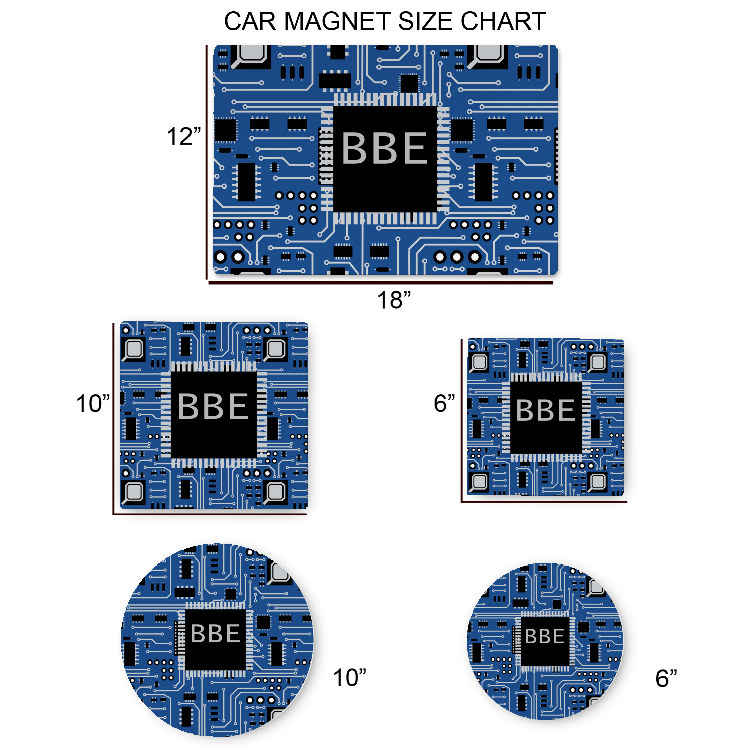 Your personalized car magnets are available for purchase in two shapes and two sizes. We carry round and square editions; each shape can either be 6 by 6 inches, or 10 by 10 inches, depending on your needs. Both versions are 1 millimeter thick, which is considered, within the industry, as the ideal thickness for automobile magnets. The magnetic car decals will adhere to any smooth, metal surface of your cars body, such as the trunk door or a side panel. However, please note that some vehicles are constructed from fiberglass bodies, which prevents the adhesion of anything magnetic. We advise that you test your vehicle before purchasing these magnets.