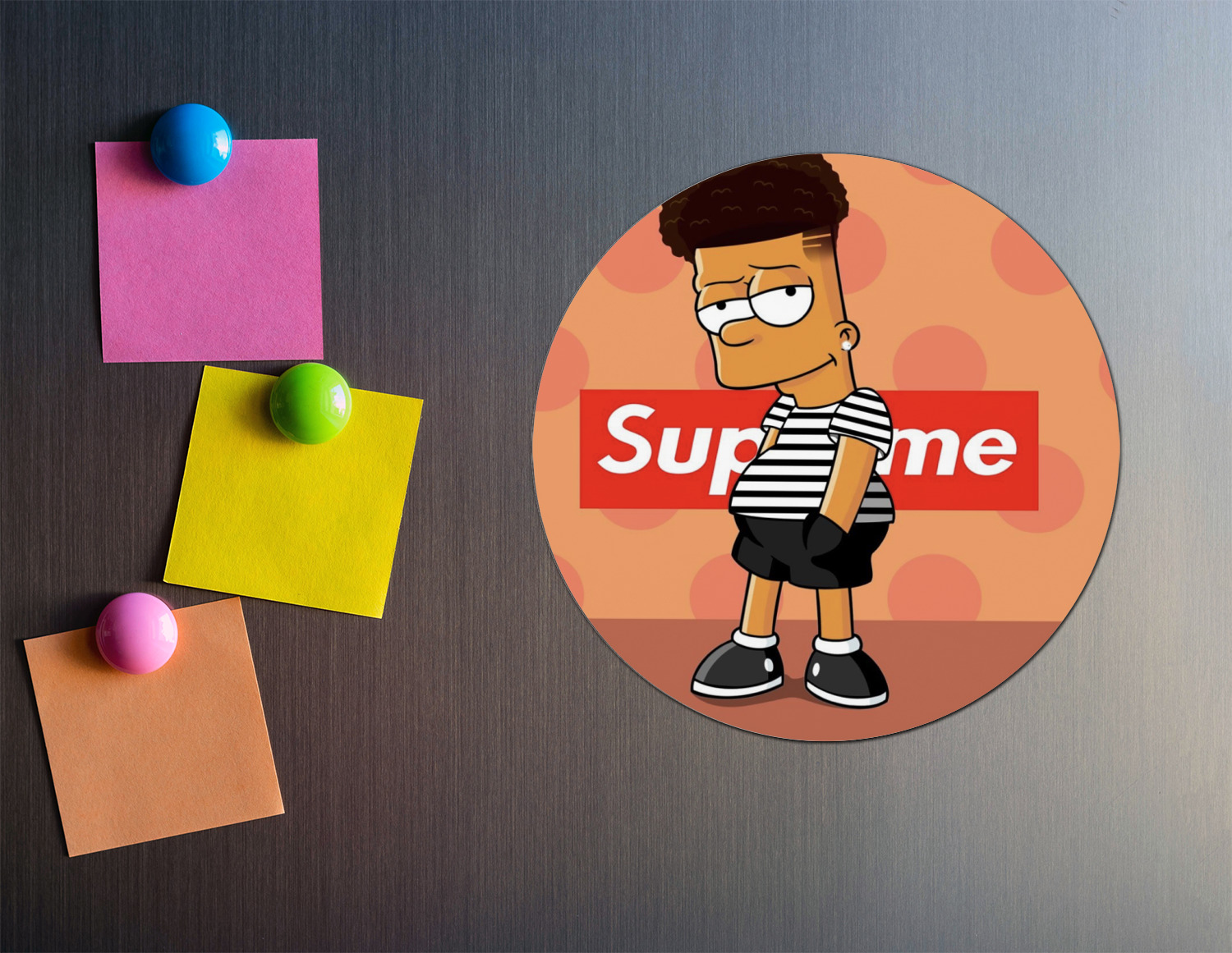 Get rid of all those unslightly magnets you've gathered from food delivery places and jazz up your fridge with our personalized round magnets. If you're looking for a small gift with a big bang you've found them!! With the designs and colors from our collections you are sure to find one that fits anyone's personality.
