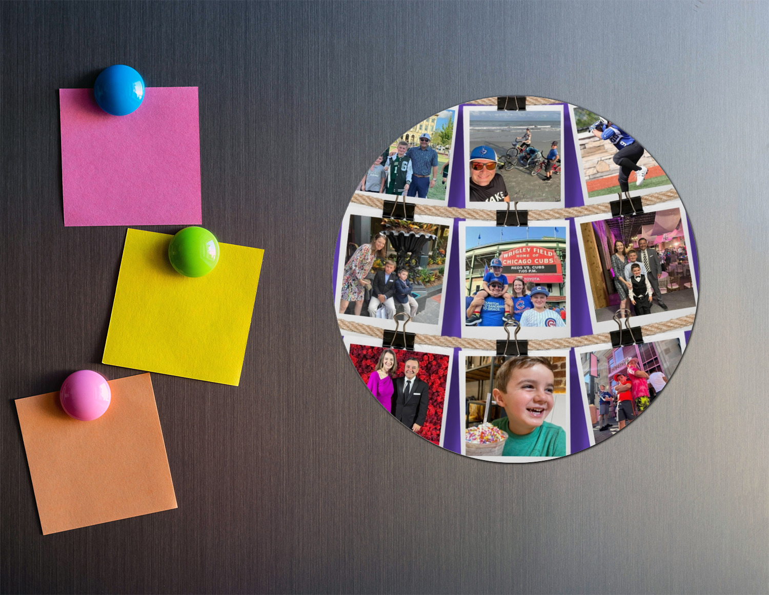 Get rid of all those unslightly magnets you've gathered from food delivery places and jazz up your fridge with our personalized round magnets. If you're looking for a small gift with a big bang you've found them!! With the designs and colors from our collections you are sure to find one that fits anyone's personality.