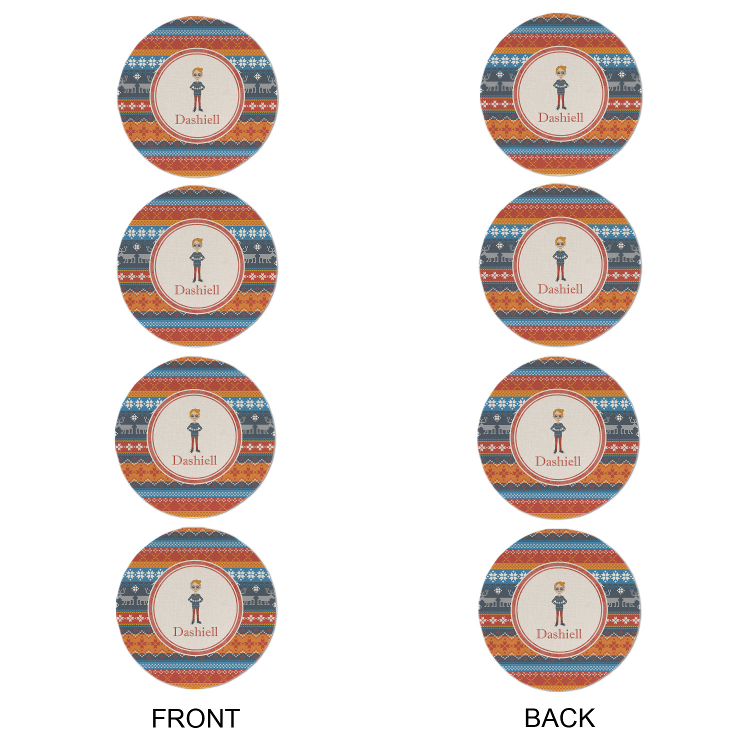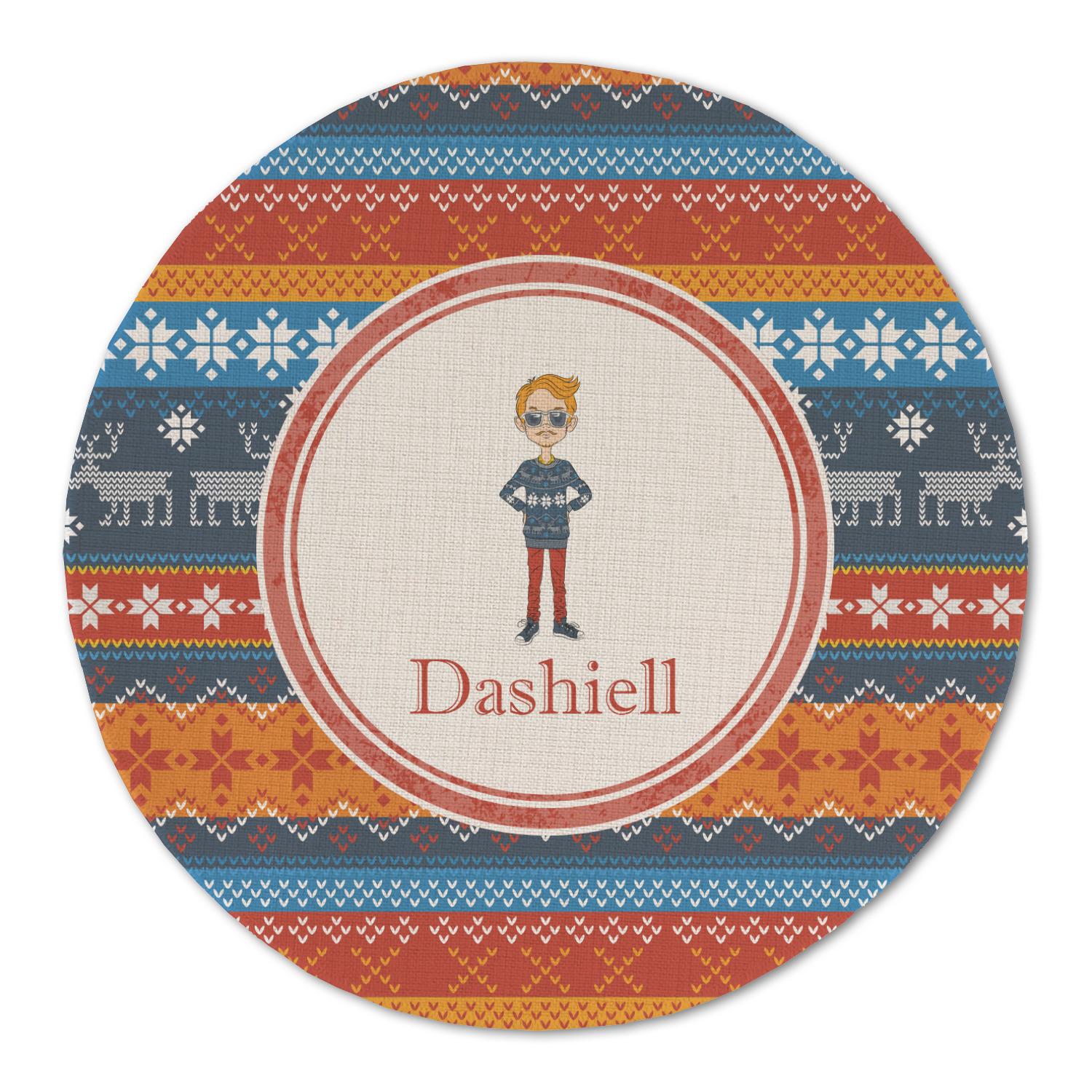 Hipster Winter Design on Custom Round Linen Placemats - Double-Sided - Set of 4
