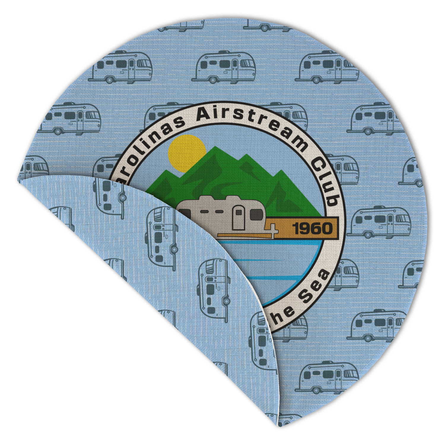 Carolina Airstream Club Design on Custom Round Linen Placemat - Double-Sided - Single