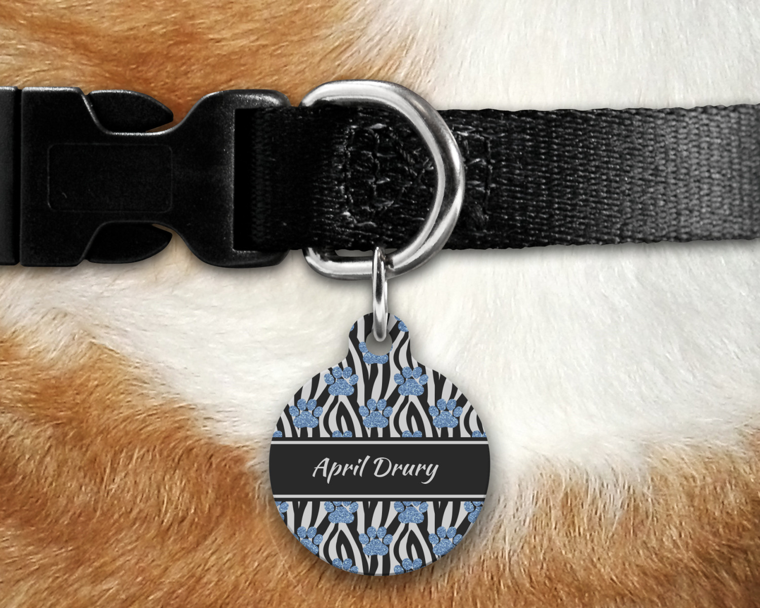 Go ahead; skip the monotony of plain pet ID tags with your very own, customized & personalized, round pet tag! This pet ID tag, fitting for both cats and dogs, will catch the eye of any onlooker (humans, canines, and felines, alike!) and accentuate your pet's individual personality.