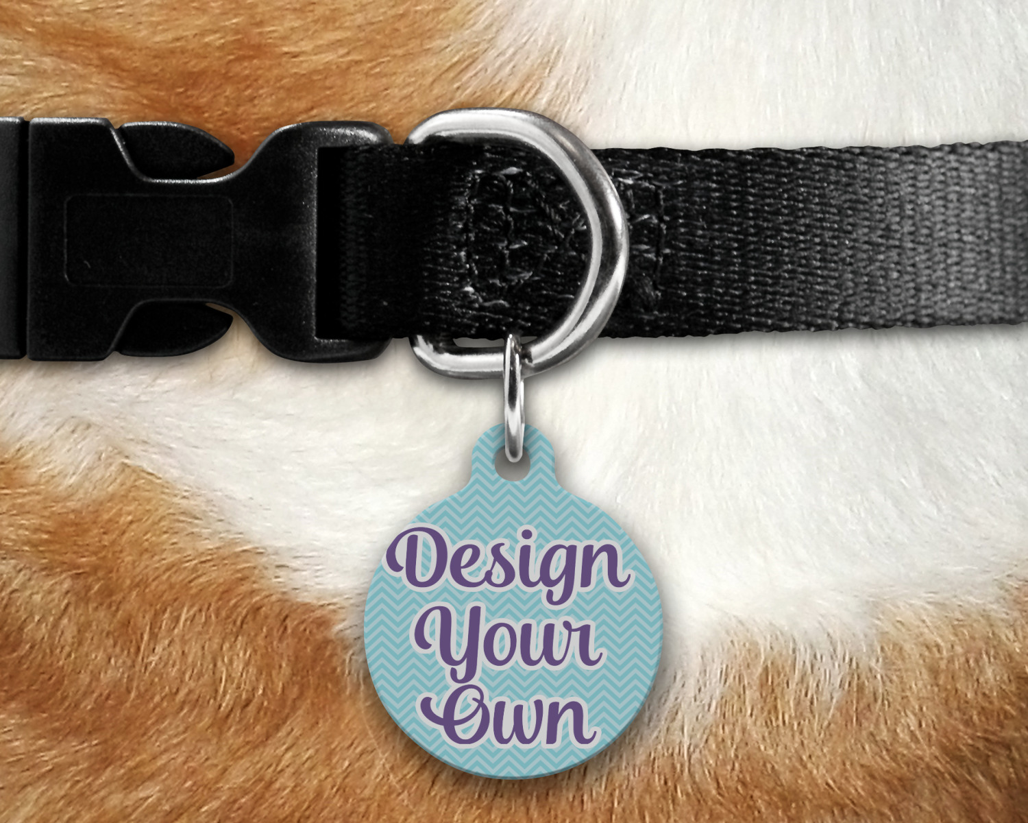 Go ahead; skip the monotony of plain pet ID tags with your very own, customized & personalized, round pet tag! This pet ID tag, fitting for both cats and dogs, will catch the eye of any onlooker (humans, canines, and felines, alike!) and accentuate your pet's individual personality.