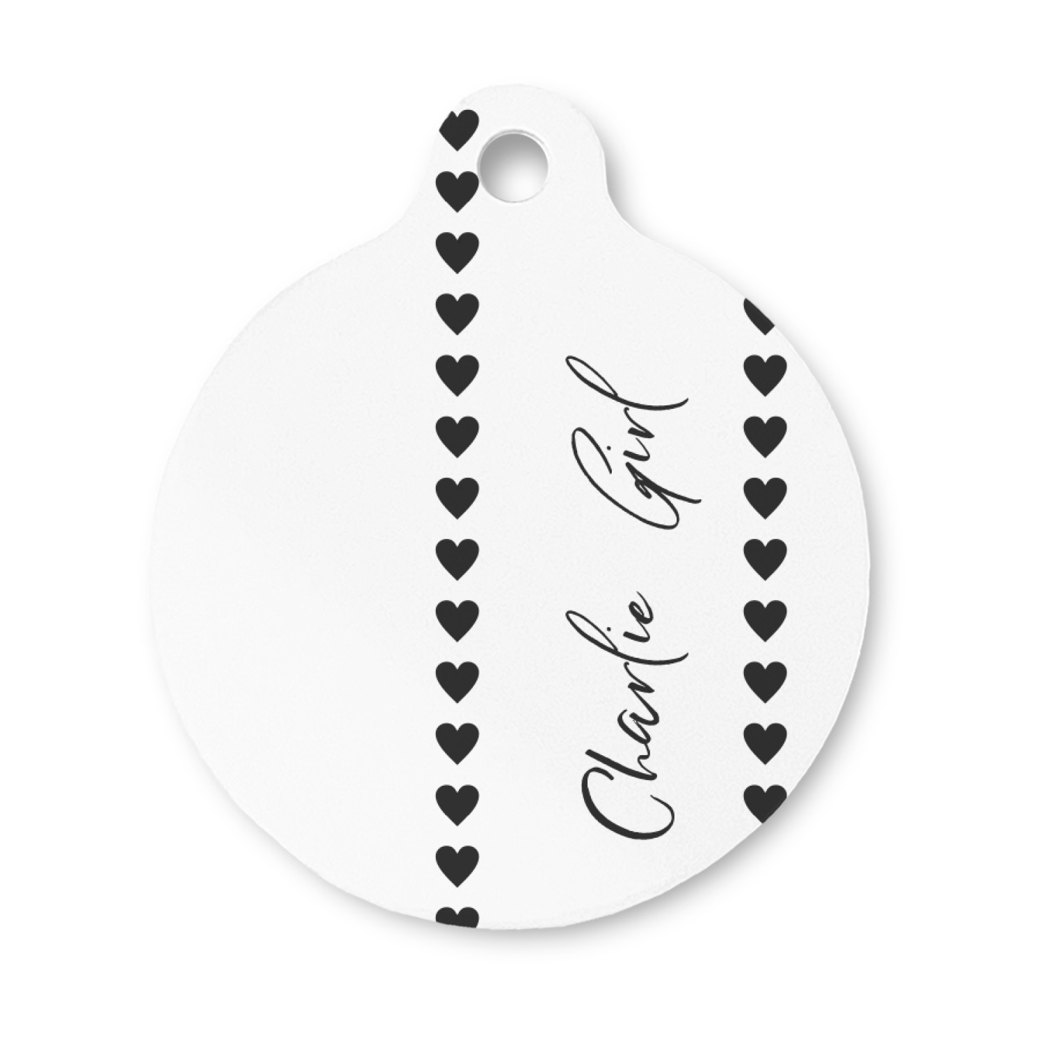 Go ahead; skip the monotony of plain pet ID tags with your very own, customized & personalized, round pet tag! This pet ID tag, fitting for both cats and dogs, will catch the eye of any onlooker (humans, canines, and felines, alike!) and accentuate your pet's individual personality.